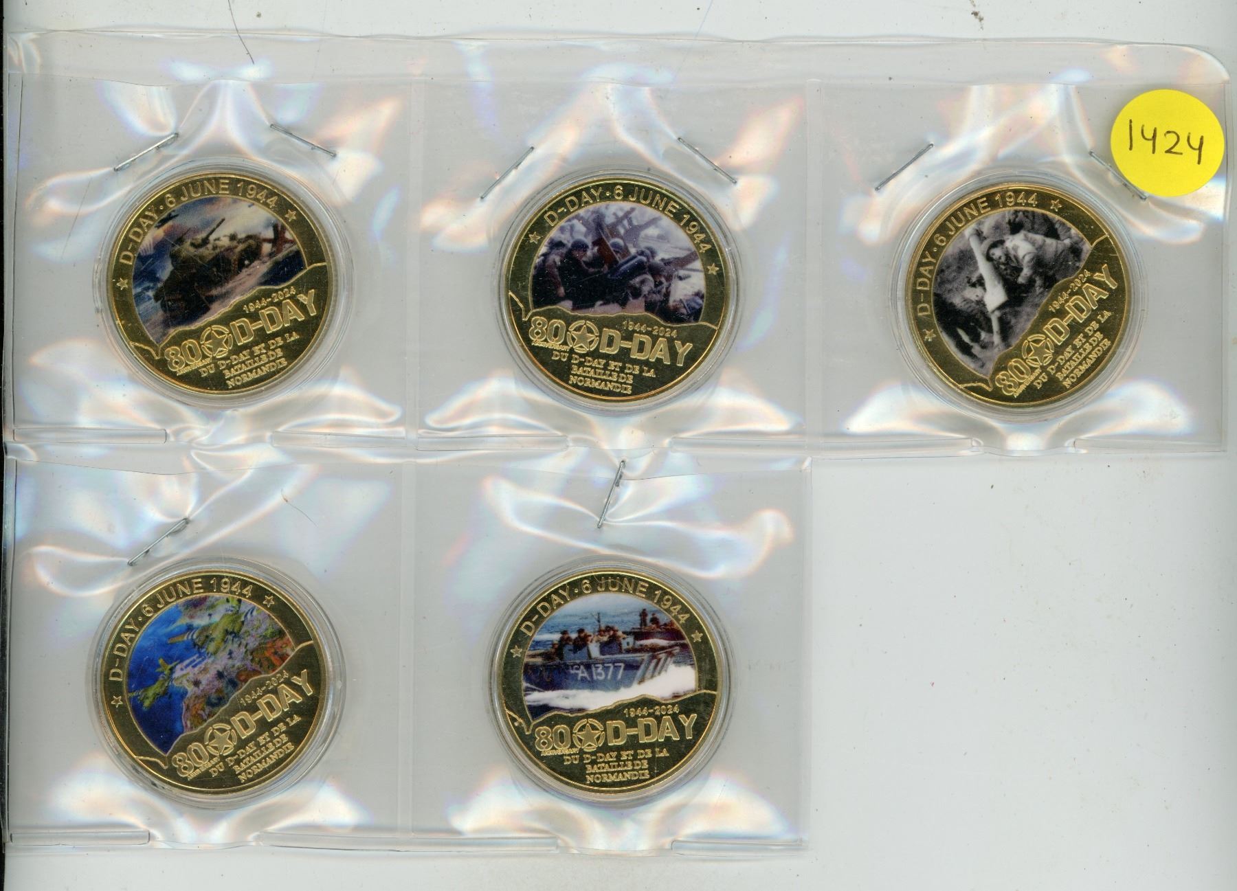 Complete set of 5 colourized 80th Anniversary of D-Day medals. BU.