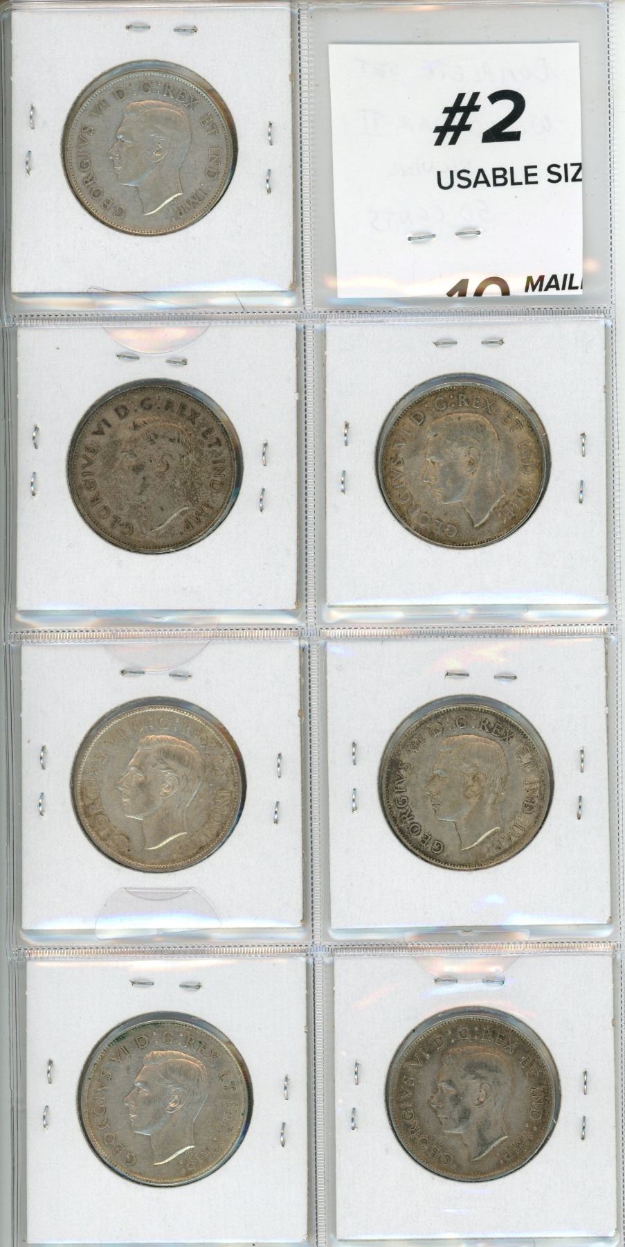 Complete set of 7 Canadian World War II Silver 50 Cents. Includes 1939, 1940, 1941, 1942, 1943, 1944