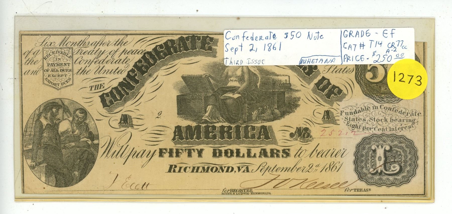 Confederate States of America 1861 $50. This is a genuine note. VF+.