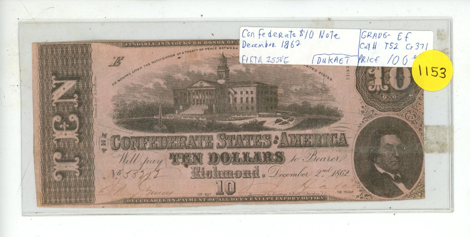 Confederate States of America 1862 $10. This is a real note. EF.