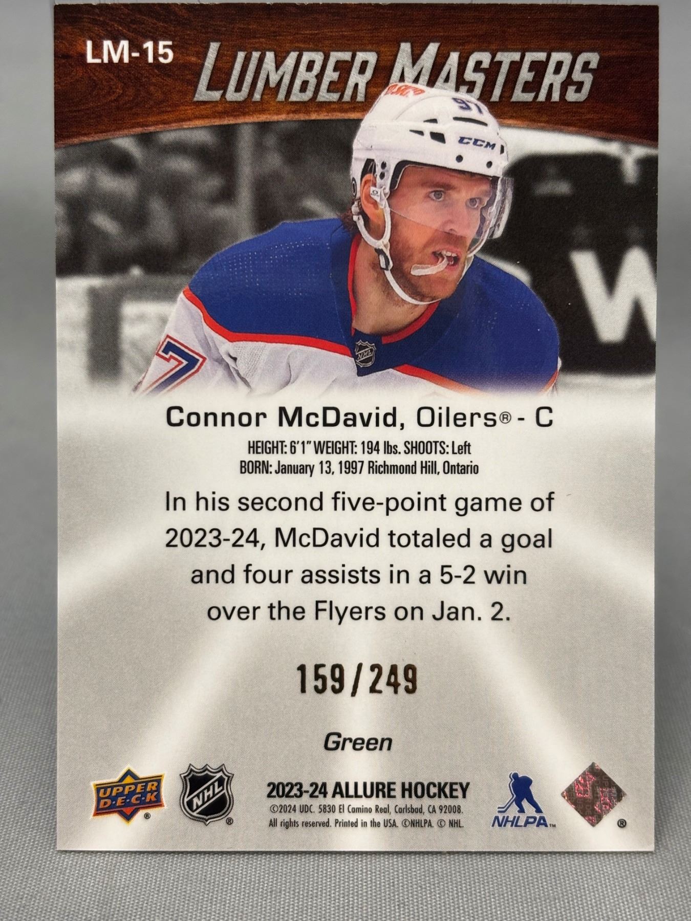 Connor McDavid 23/24 U.D. Allure #159/249 Green Cracked Ice Lumber Masters