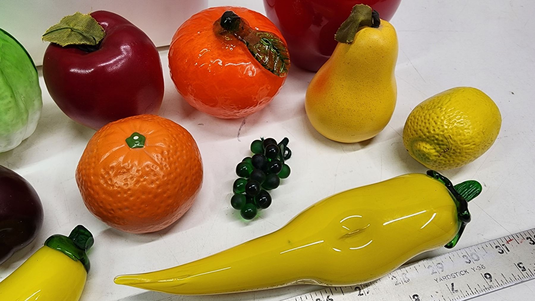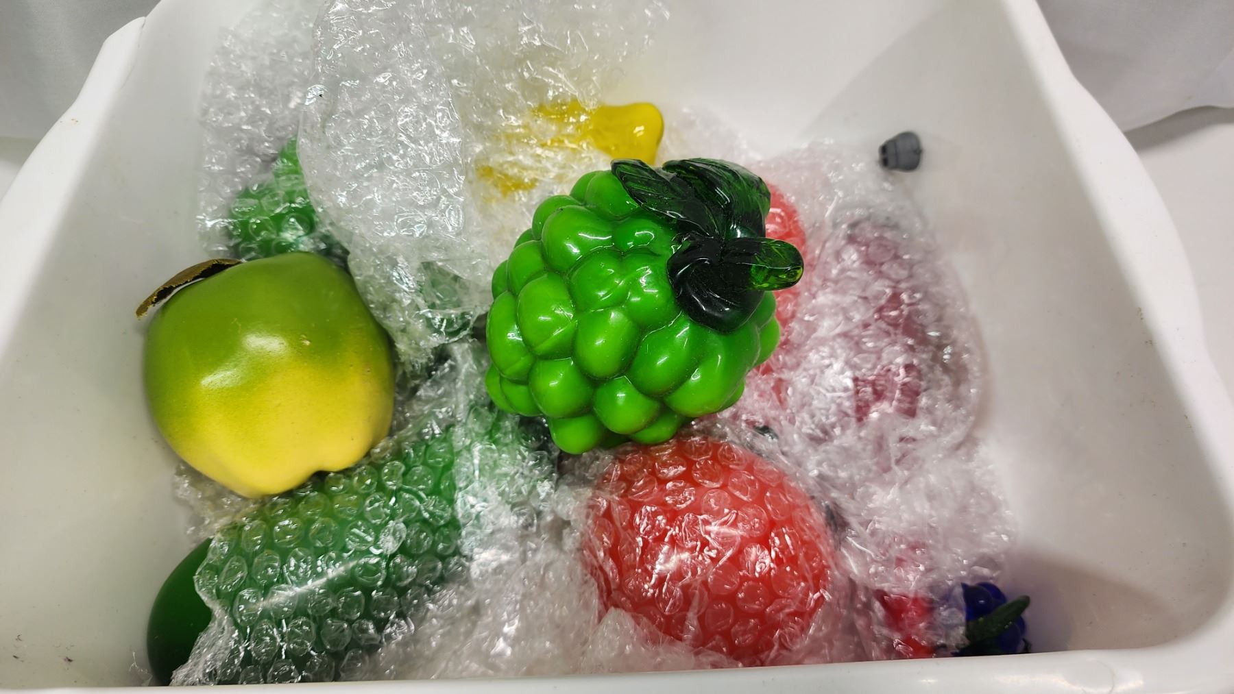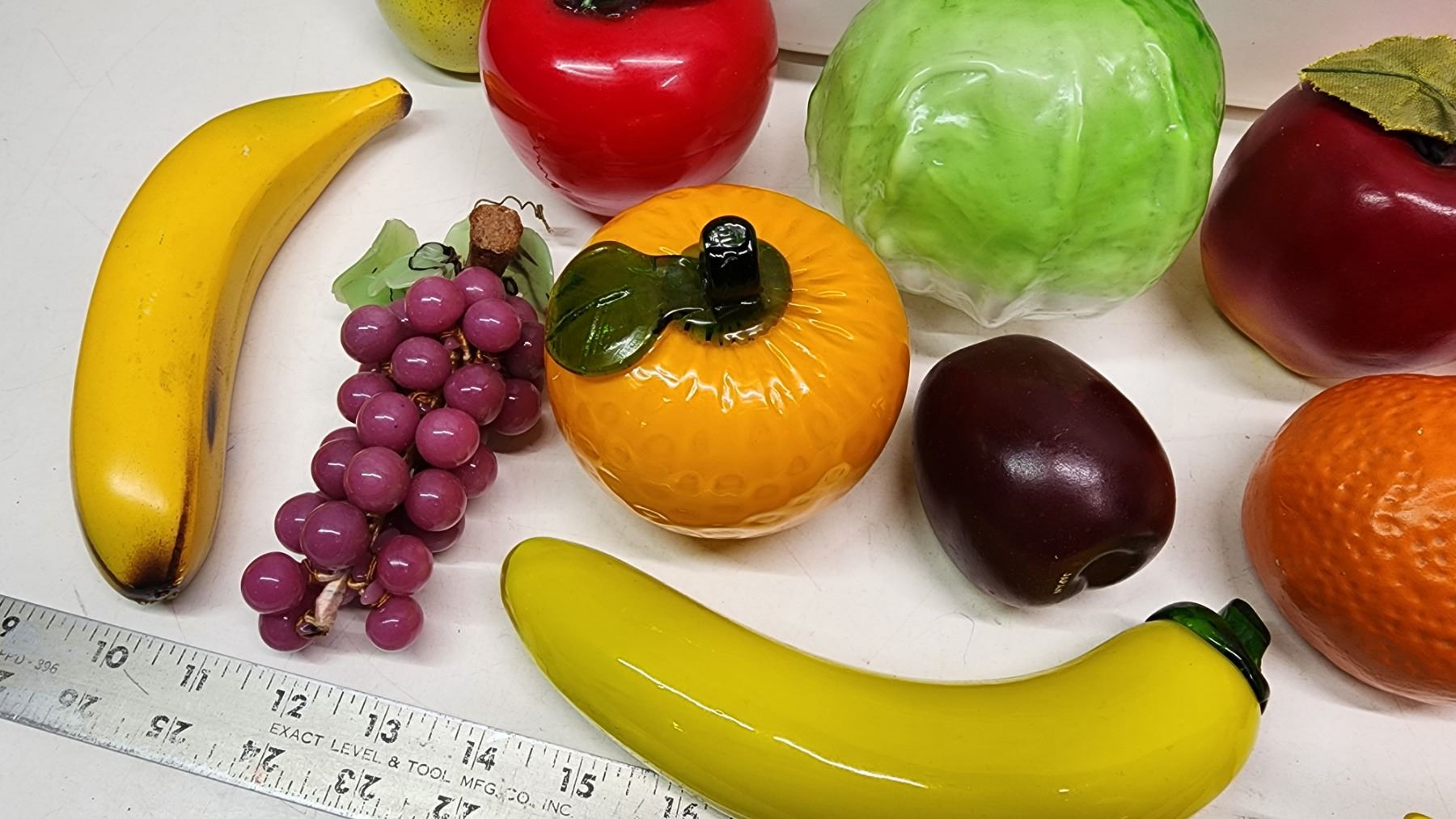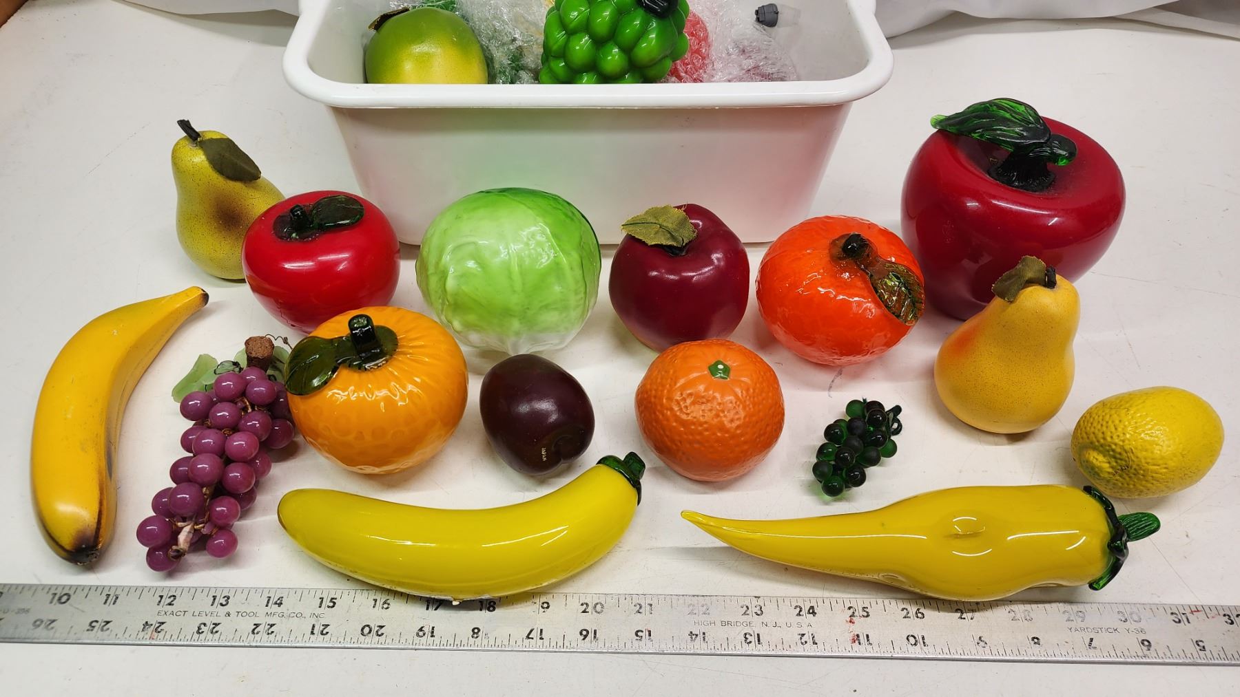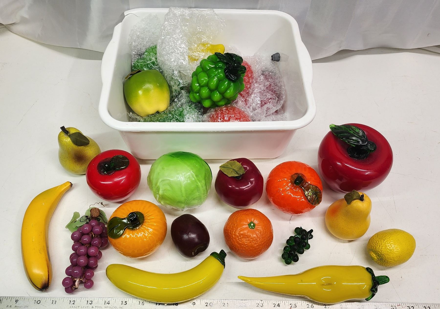 Container of Decorative Fruits (fake) - some glass, and/or porcelain/wood