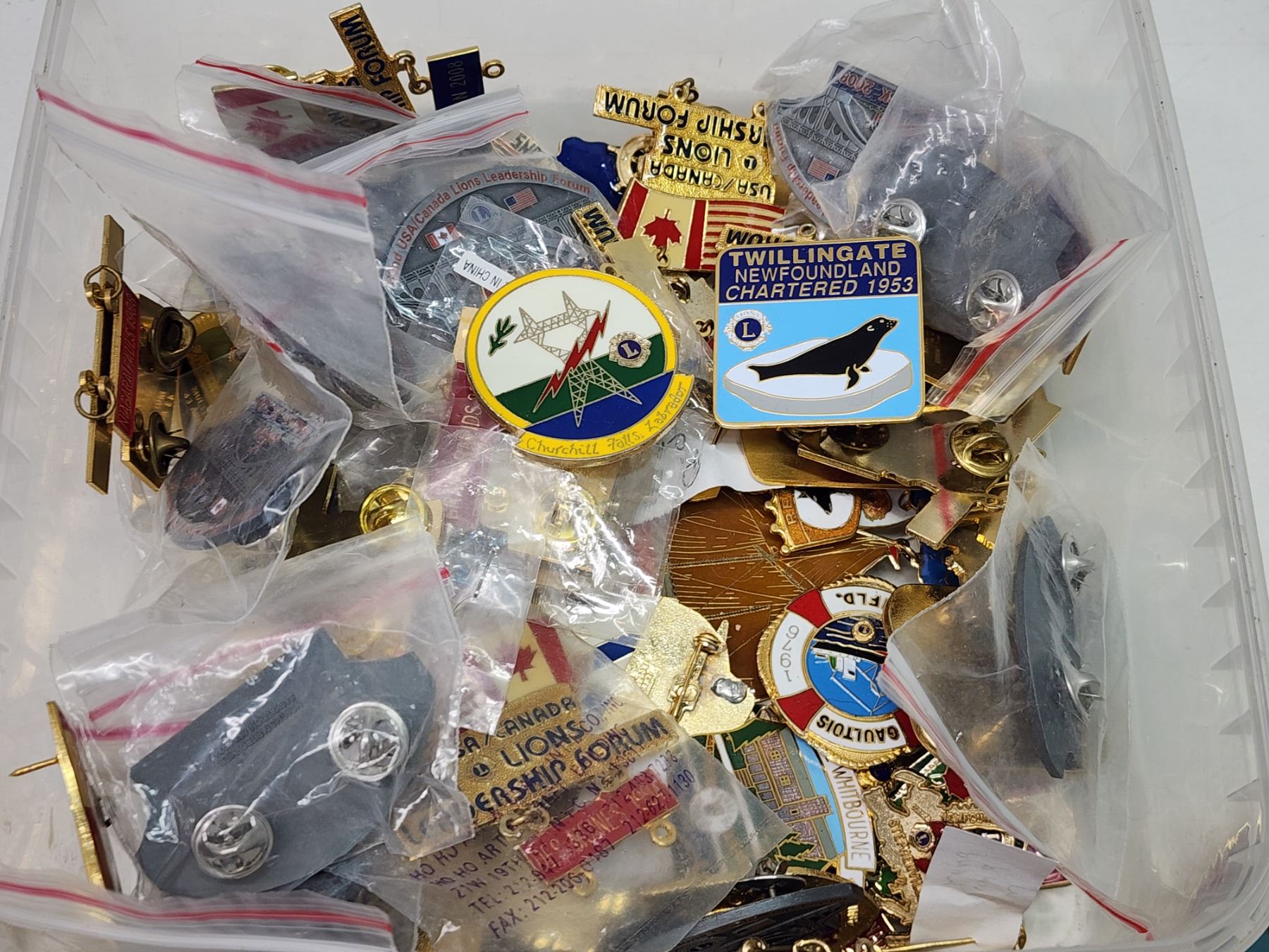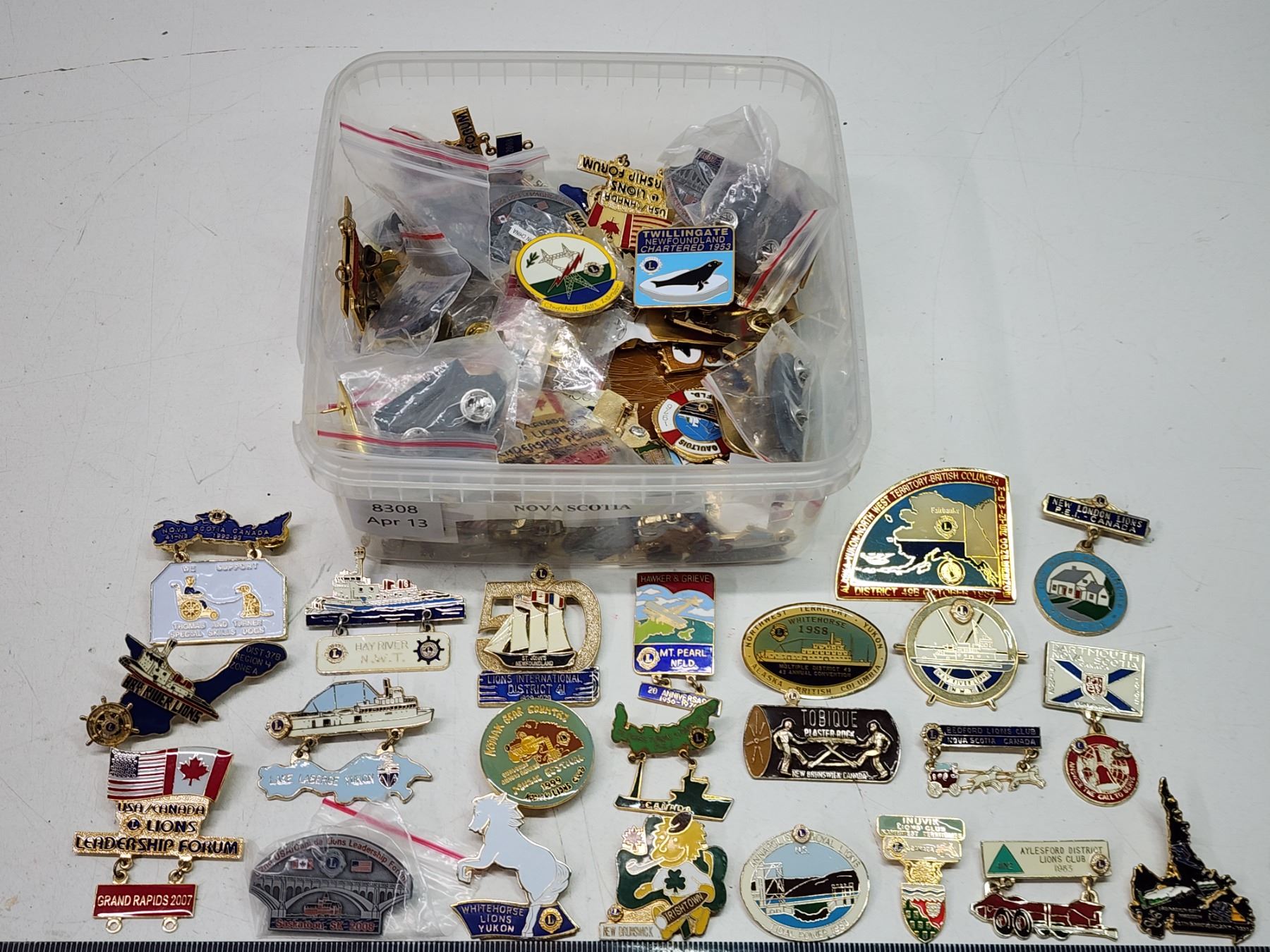 Container of Lions Club collector's pins - Canada (North/Eastern)
