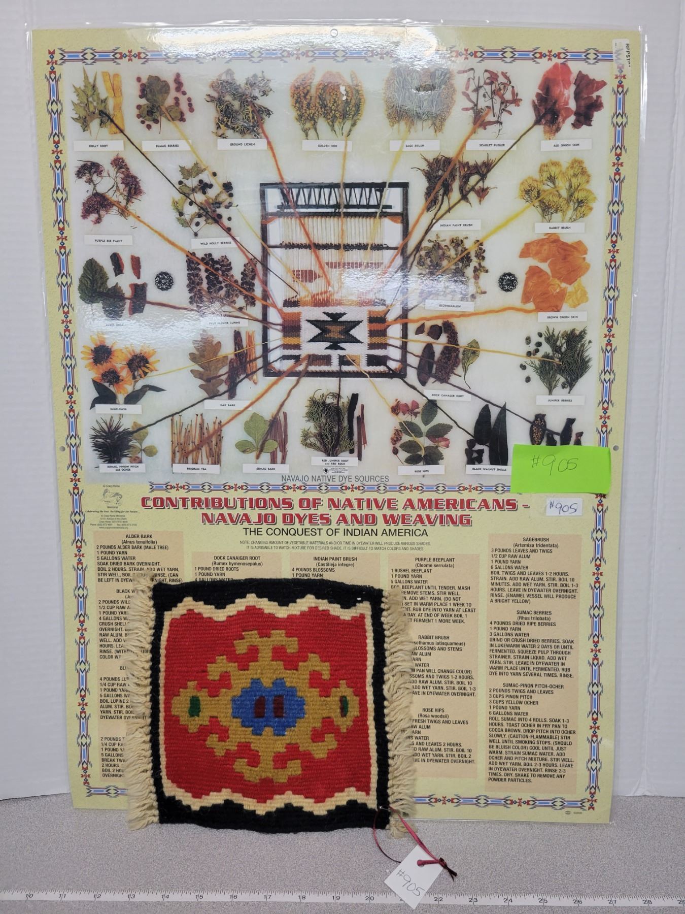 Contemporary Navaho wool weaving, 9”x8” and poster of Navaho dyes, 2009