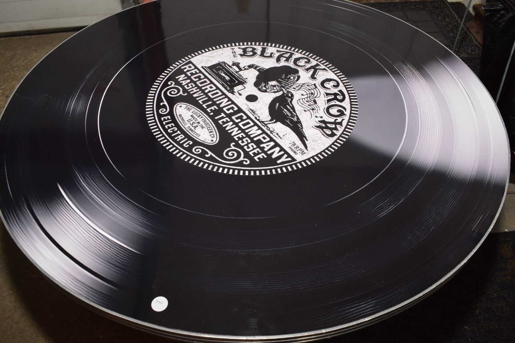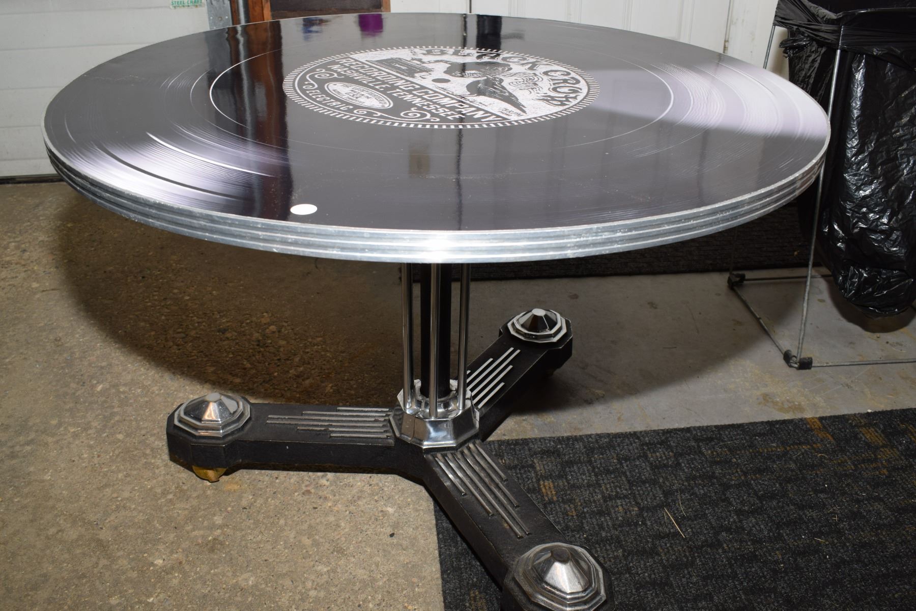 Cool Vinyl Record Styled Art Deco 34” Table w/ Metal Base