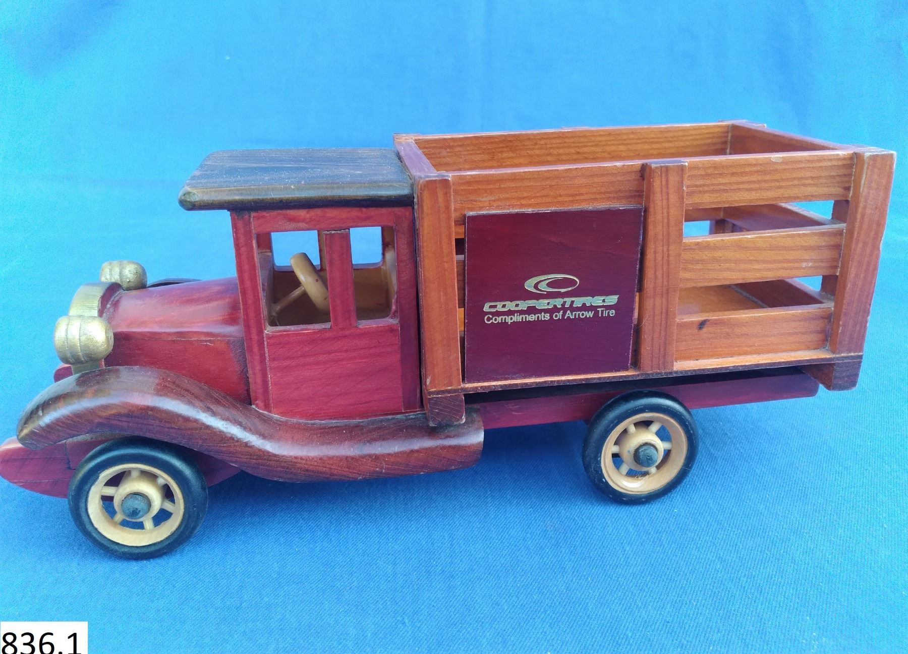 Cooper Tires display advertising wooden truck, was given as a promo to tire shops. Well made, wheels turn. Approx. 10 inches long.
