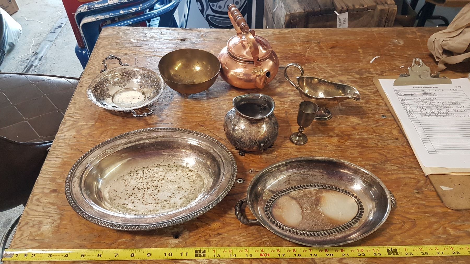 Copper Tea Pot & Silver Plated Items