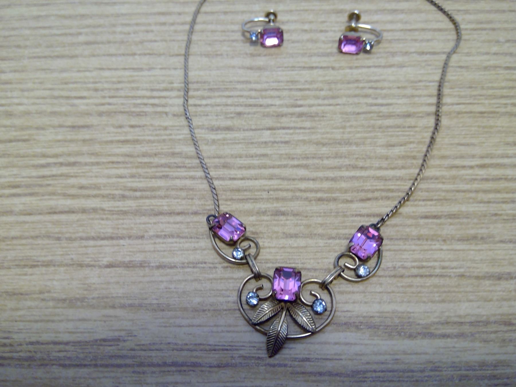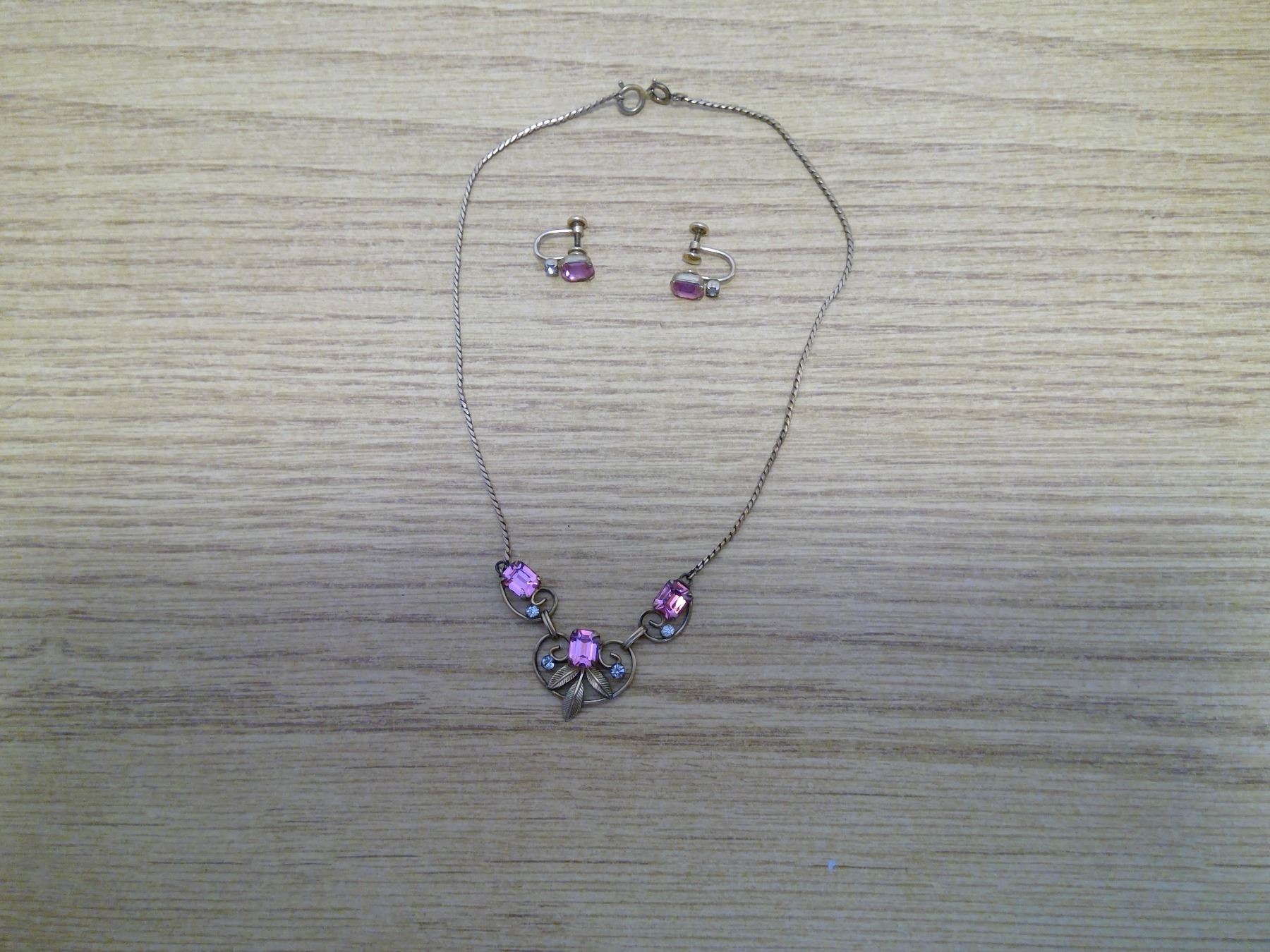 Costume Jewelry Necklace and Earrings pink stone