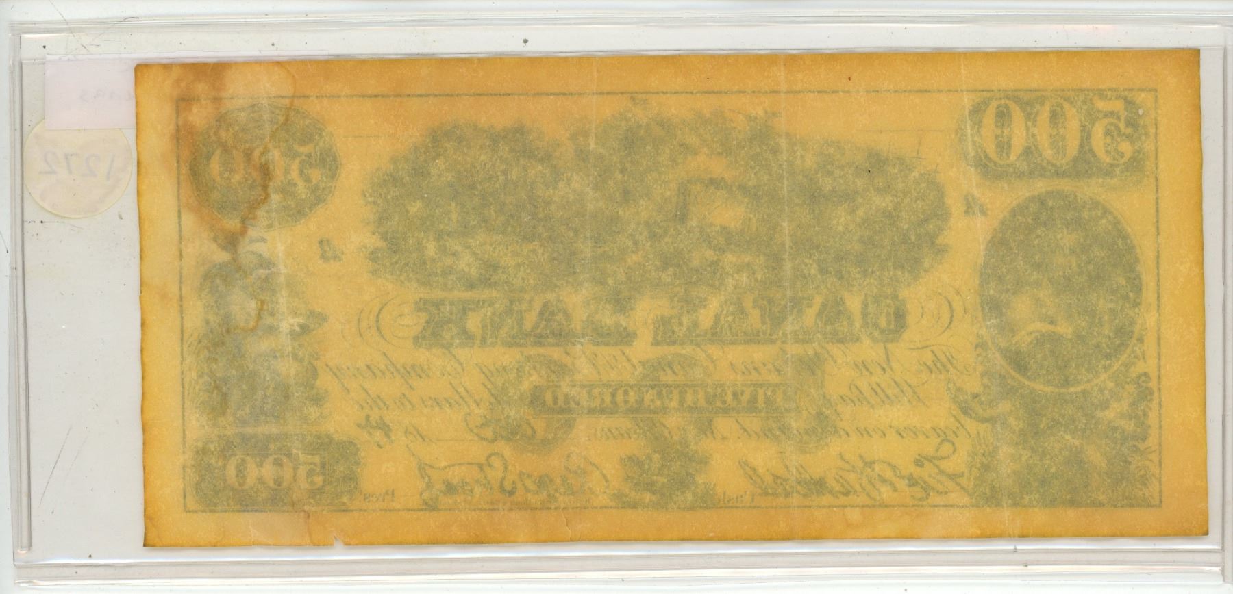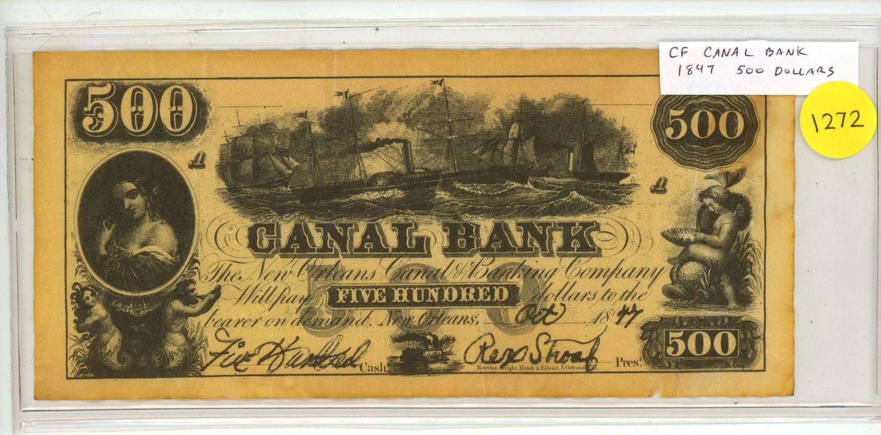 Counterfeit Canal Bank 1847 $500. This is not a real note.