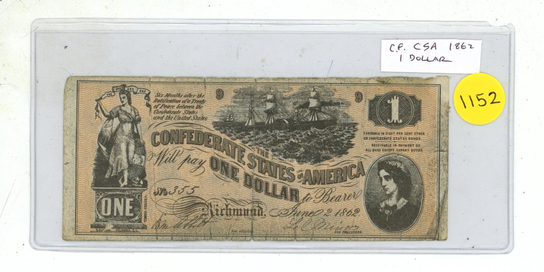Counterfeit Confederate States of America 1862 $1. This is not a real note.