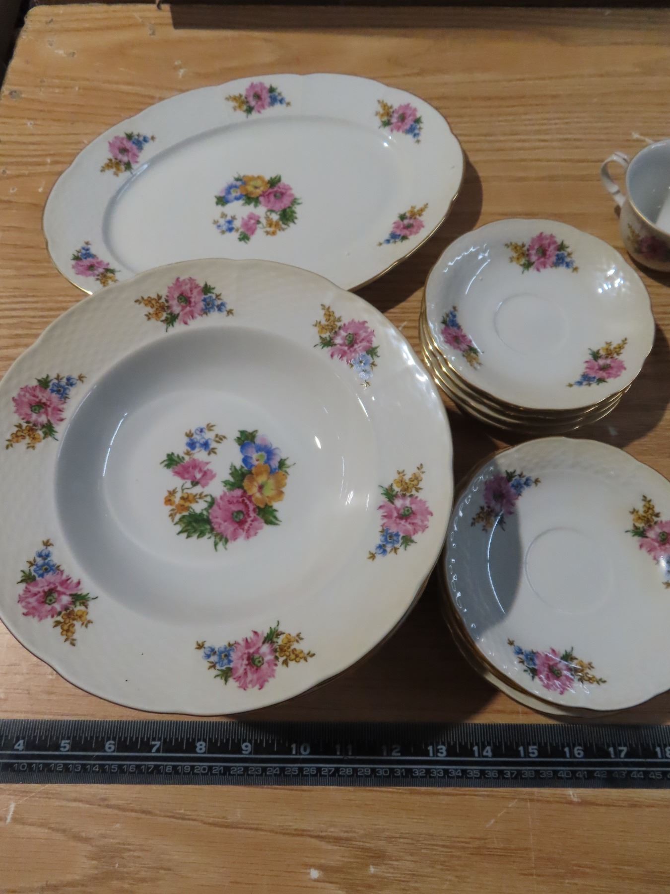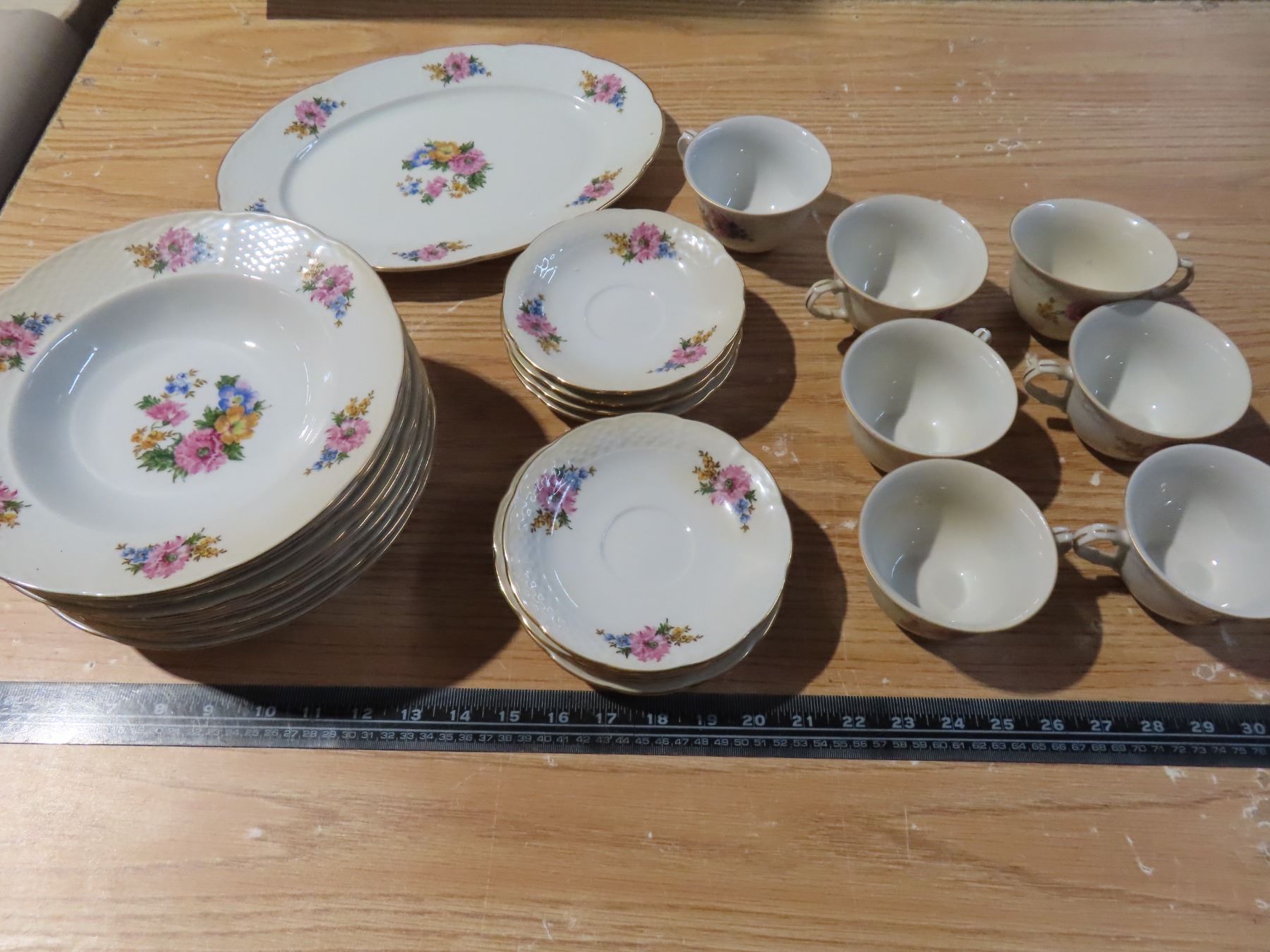 "Country Garden" Made in Czechoslovakia - 25 pieces, platter, soup bowls, teacups and saucers