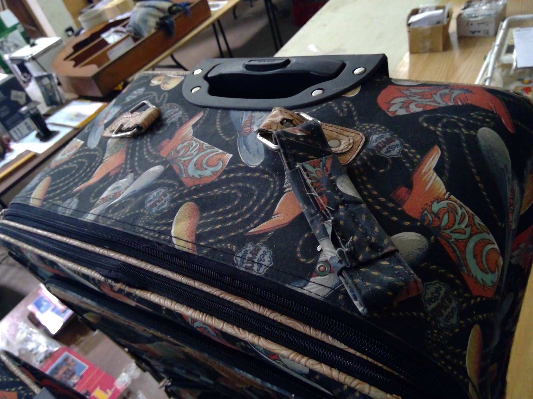 BROKEN HANDLE ON THE LARGE SUITCASE