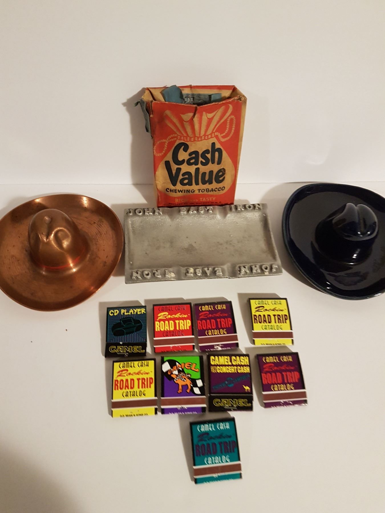Cowboy hat ashtrays plus camel matchbooks