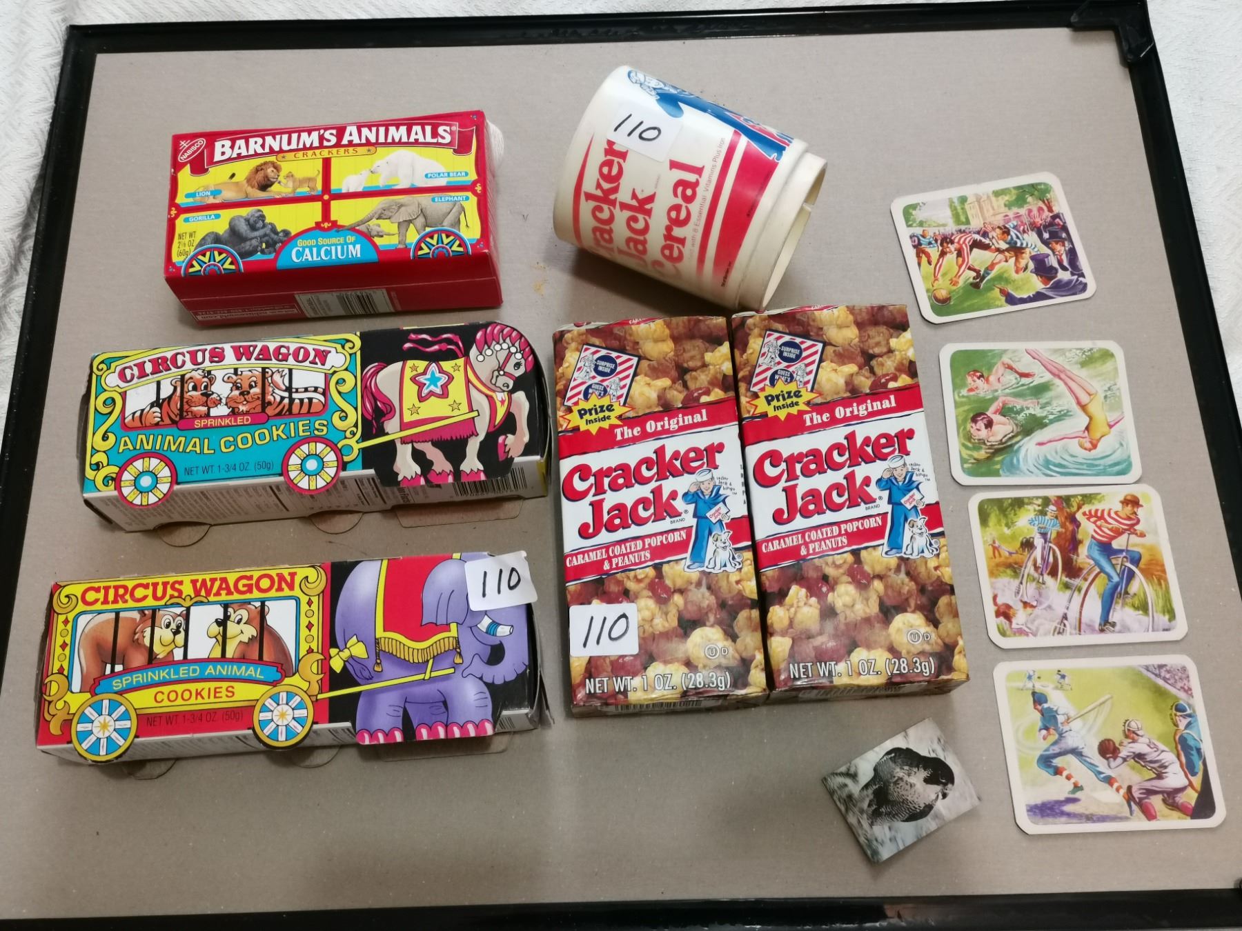 Cracker Jack lot & animal cookies, all full unopened
