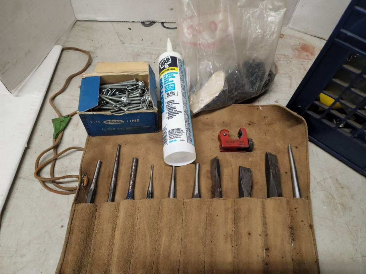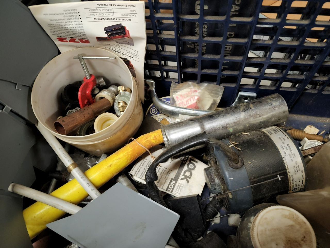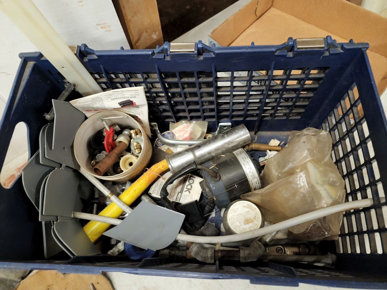Crate filled with Misc Hardware, tools, etc