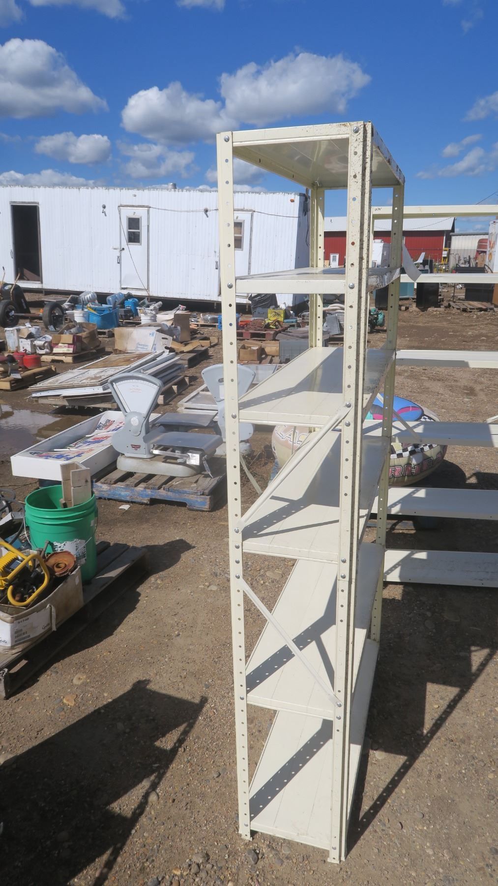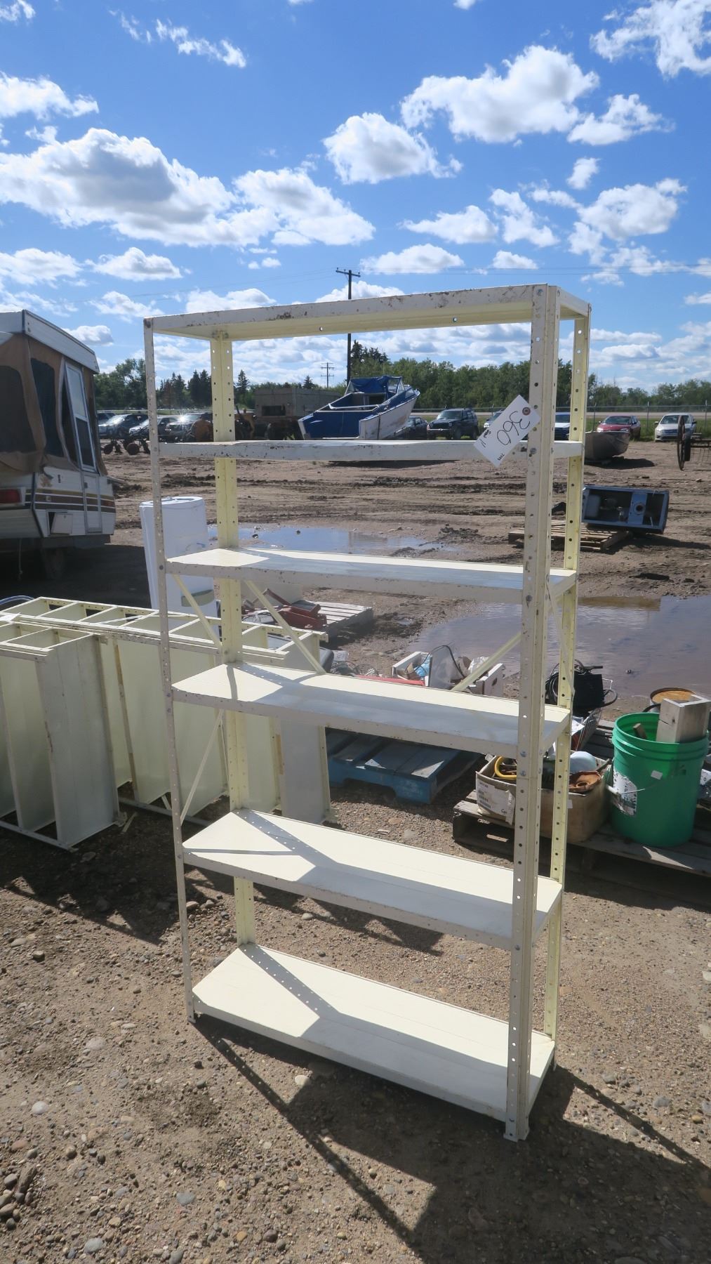 Cream color metal shelf, 6 shelves, 36"w x 68 -1/2" h x 11 -1/2" d