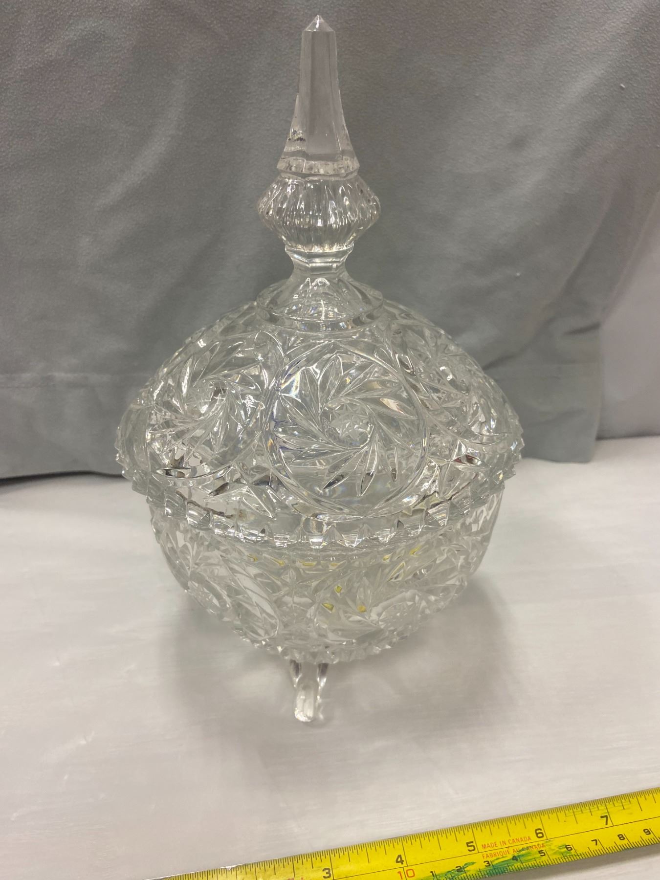 Crystal Footed Bowl + Lid 10" Tall