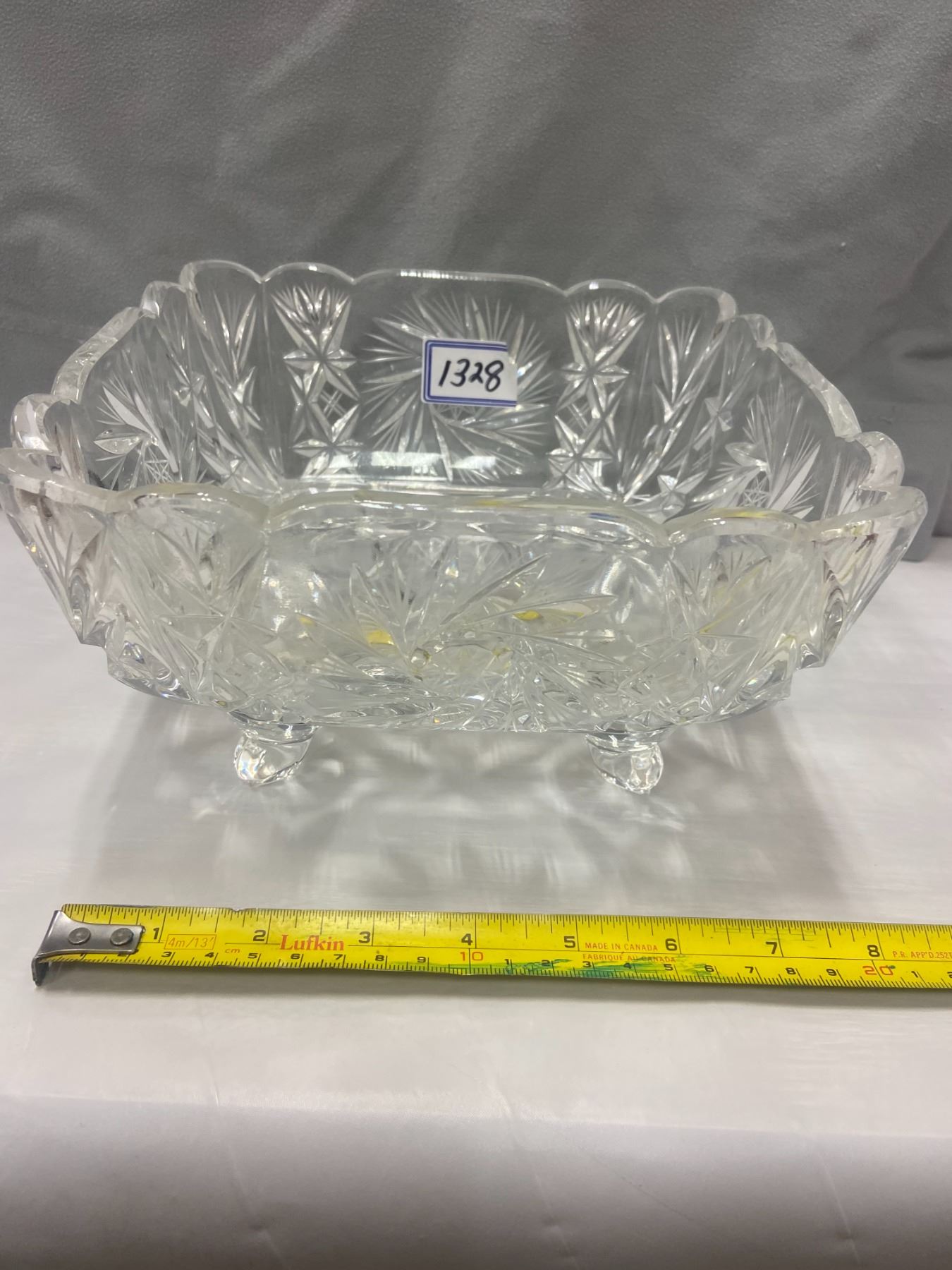 Crystal Footed Square Bowl 8 1/2 X 8 1/2