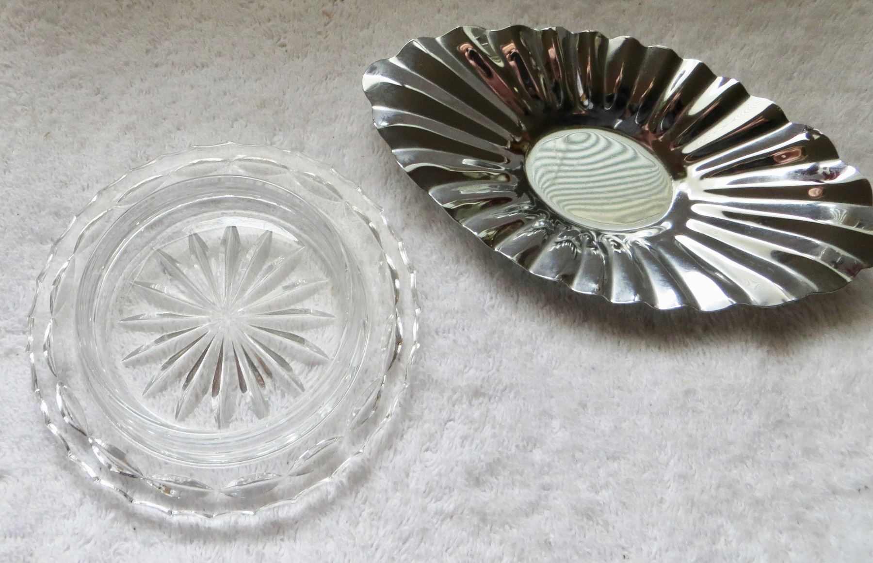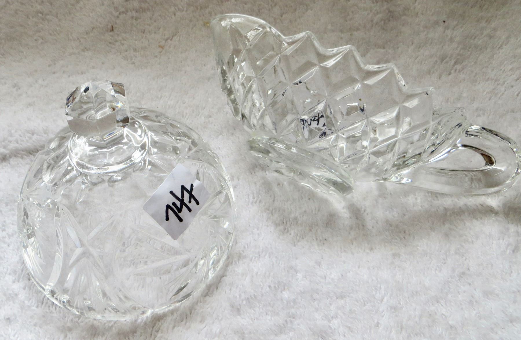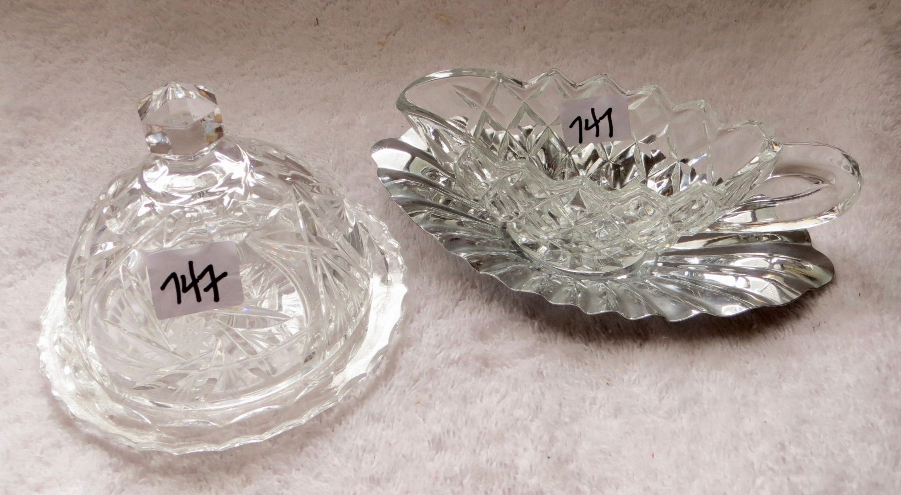 Crystal butter dish and crystal gravy sauce boat w/ base Pinwheel