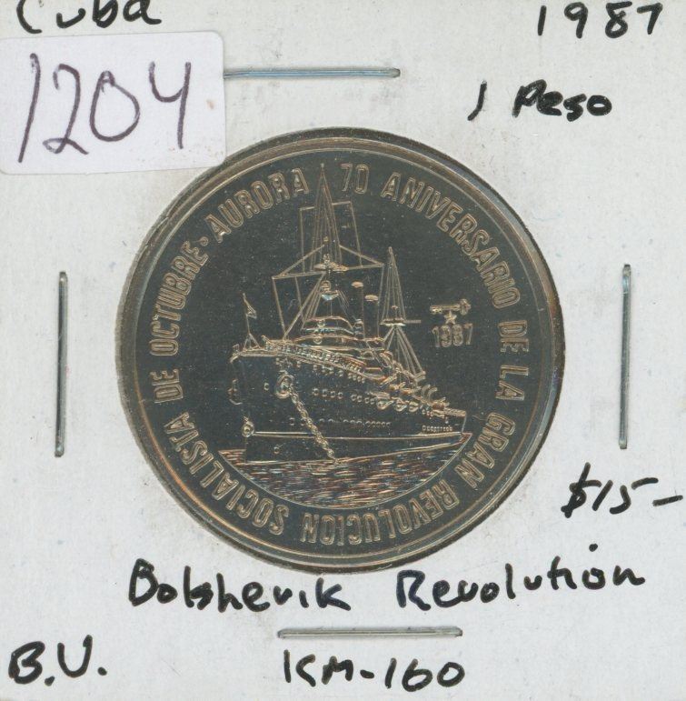 Cuba. 1987 1 Peso. Coin celebrates the 70th Anniversary of the Russian Revolution. BU.