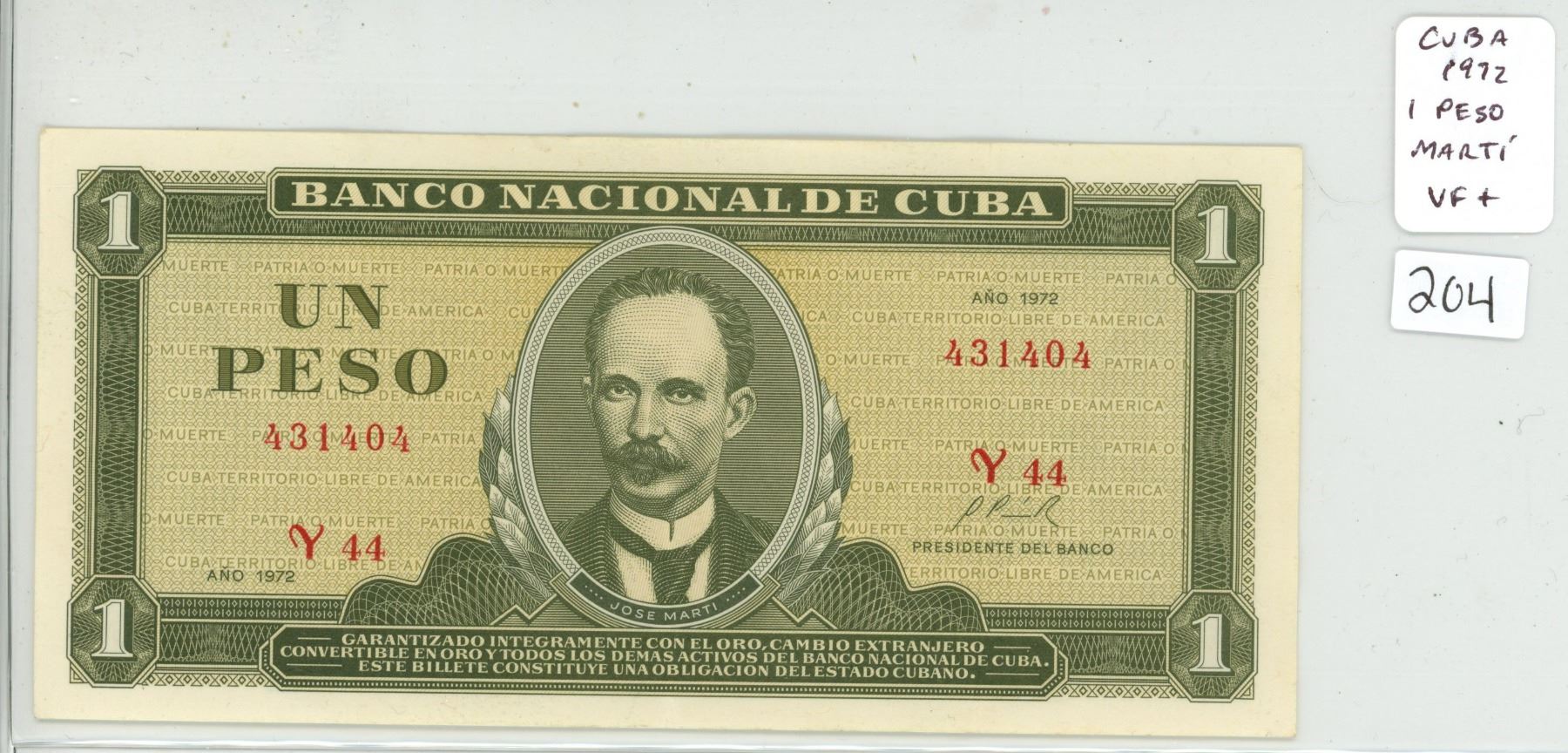 Cuba. National Bank of Cuba. 1972 1 Peso. Depicts Jose Marti, war hero. VF+.