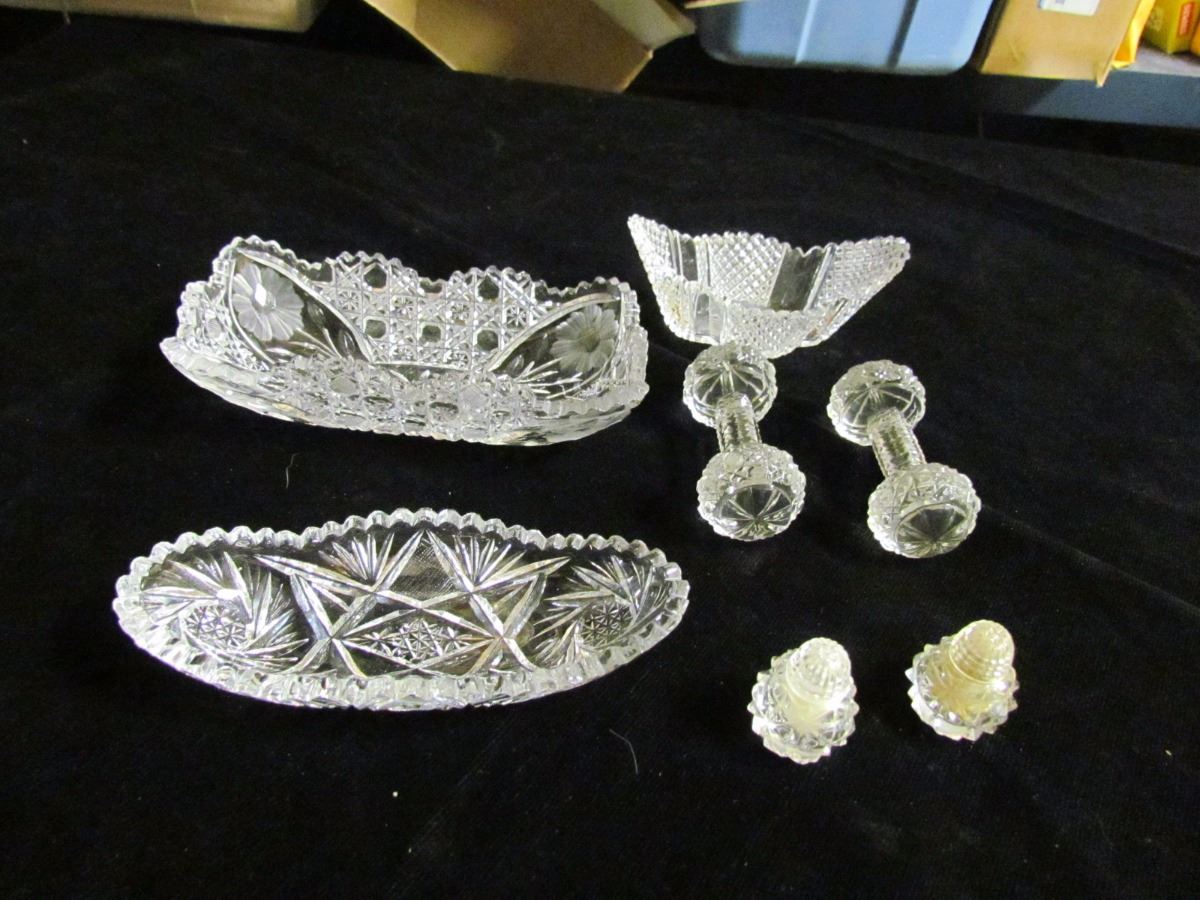 Cut Glass Pieces - Salt & Pepper , Napkin Holder & Dishes