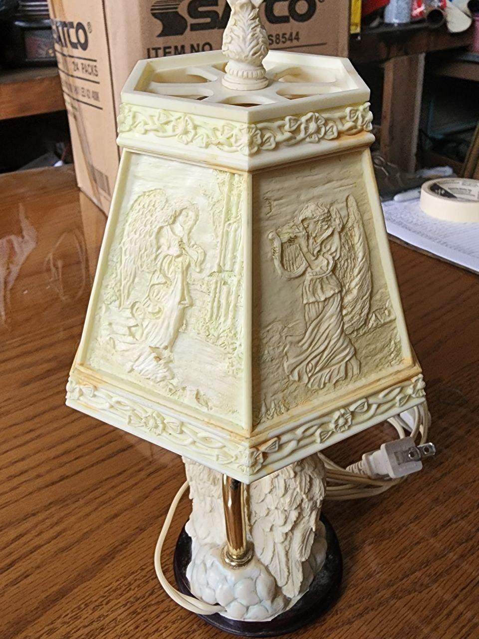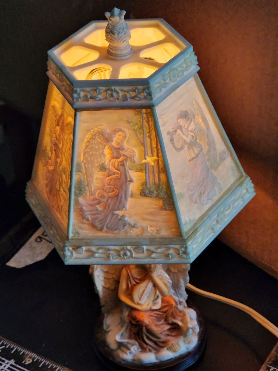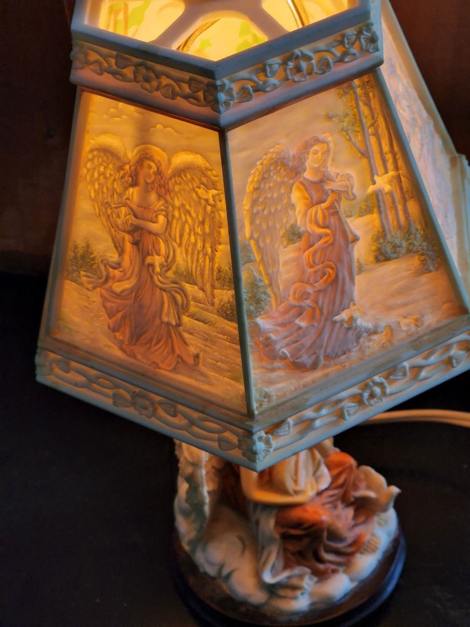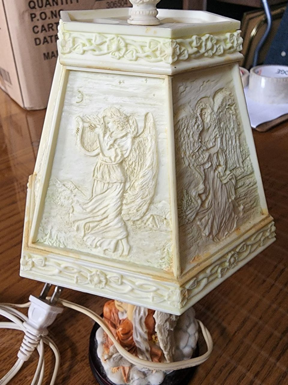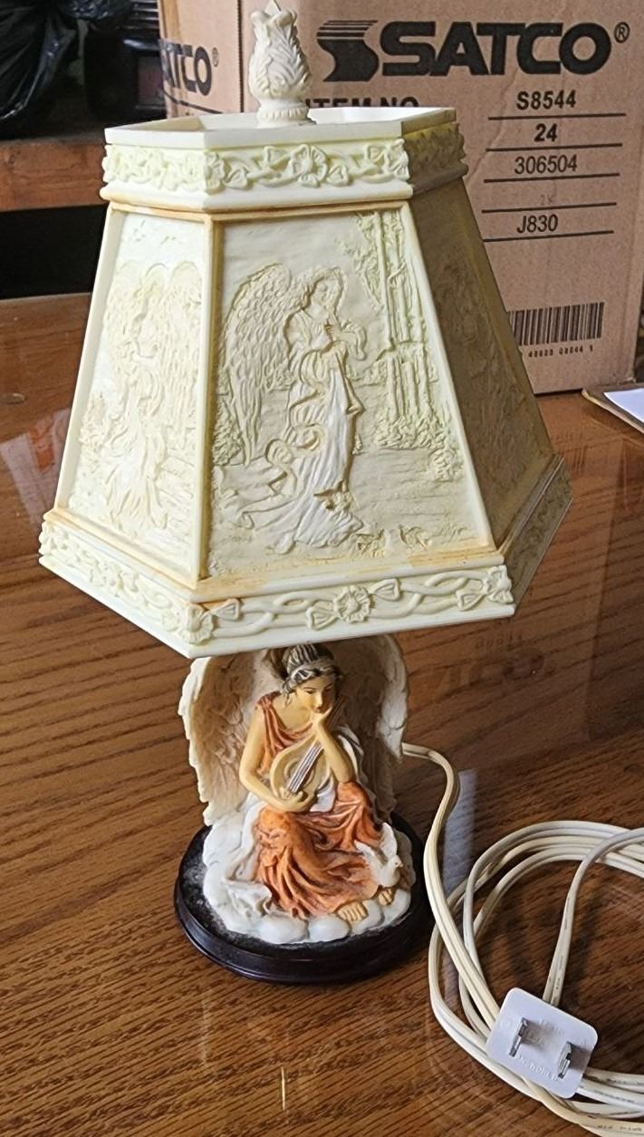 Cute Ceramic Angel Lamp with Photo Lamp Shade, Tested Working