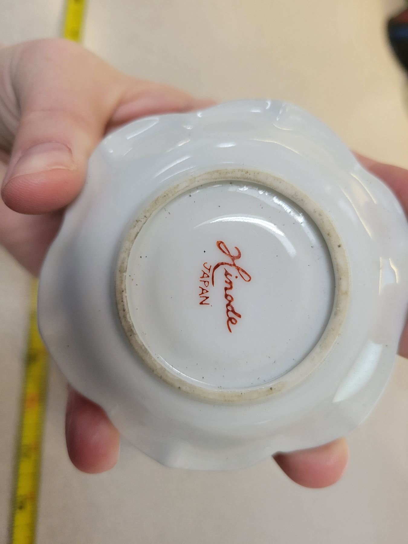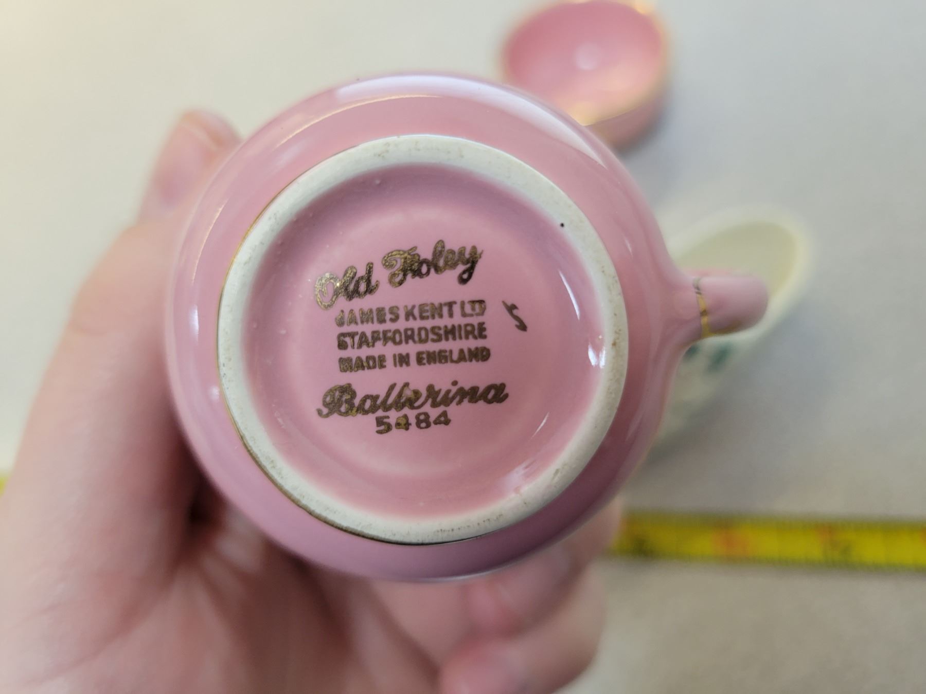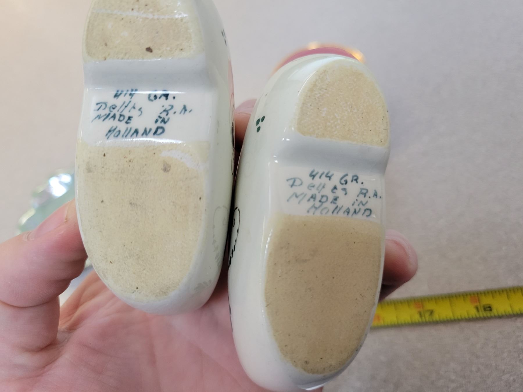 Cute trinket lot - Delft porcelain shoes, Old Foley cream & sugar, Hinode Japan miniplate