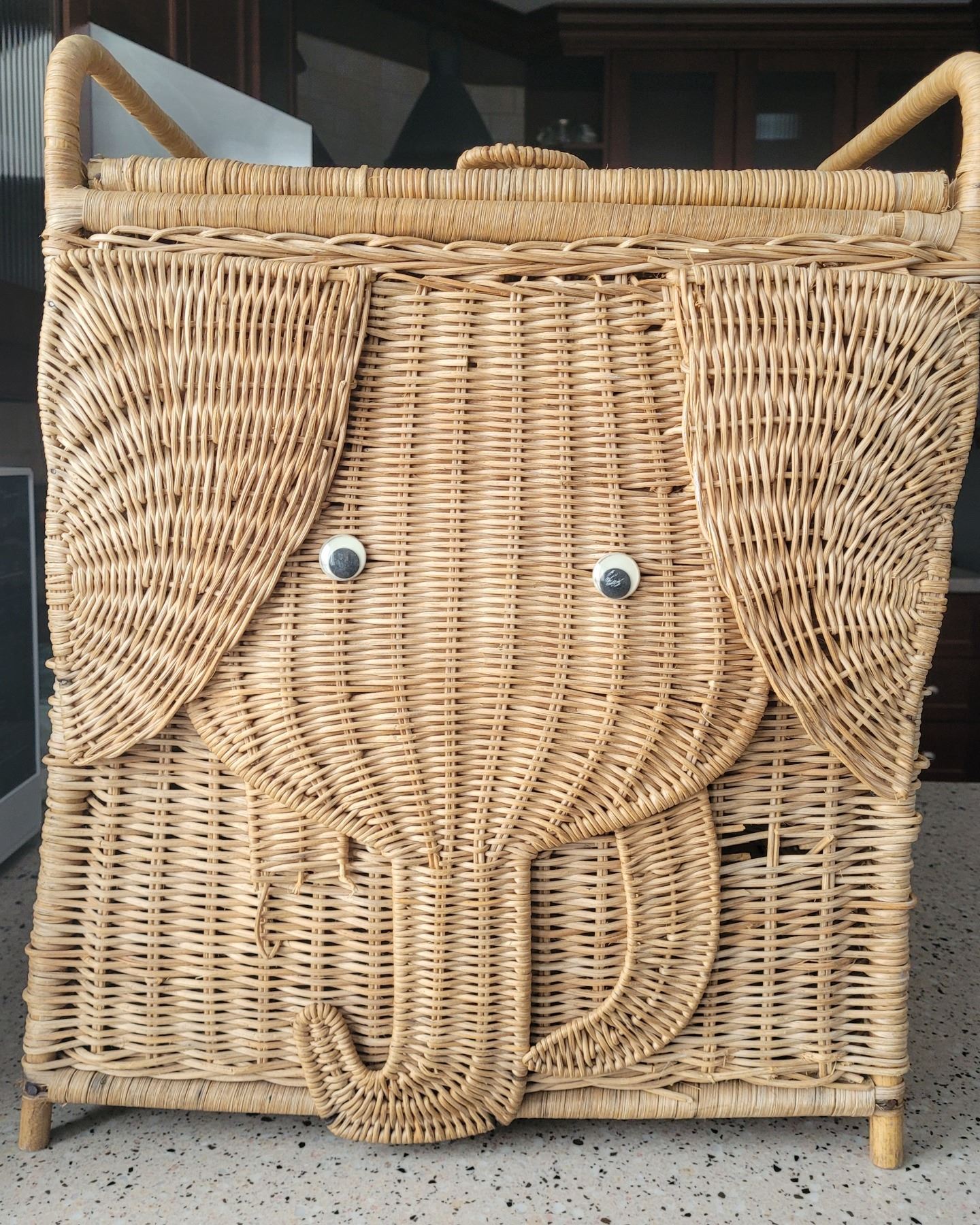 Cute woven Elephant Wicker Laundry Hamper with attached lid - 16" x 20" x 13"