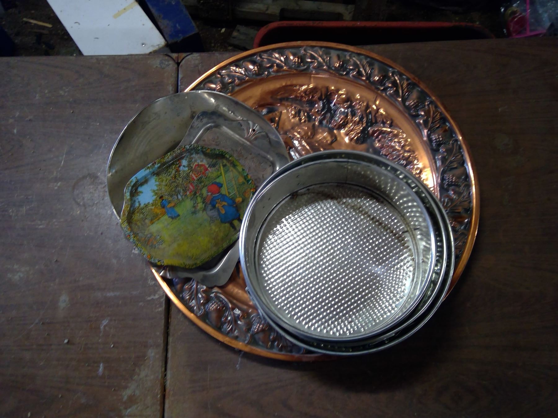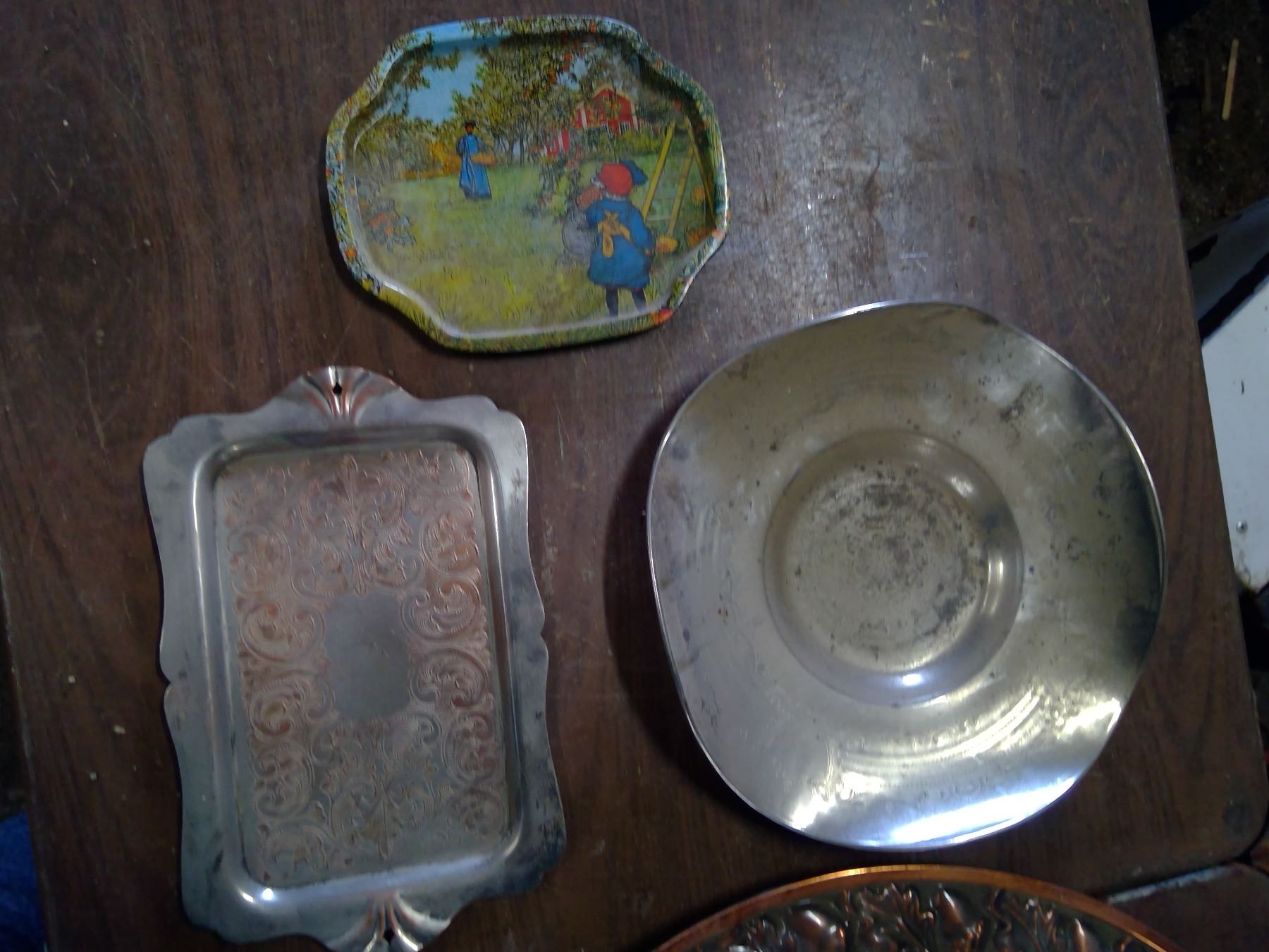 DECORATIVE COPPER TRAY AND MISC TRAYS