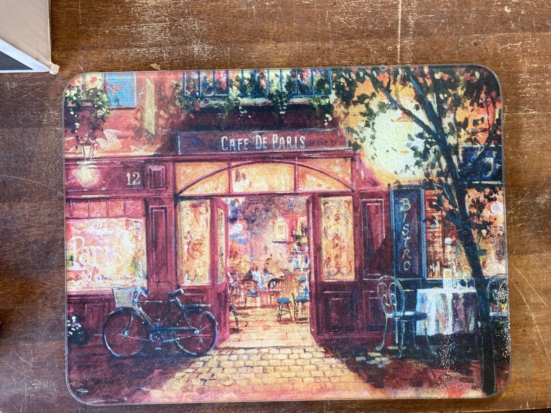 DECRATIVE GLASS CUTTING BOARD WITH PARIS STREET SCENE