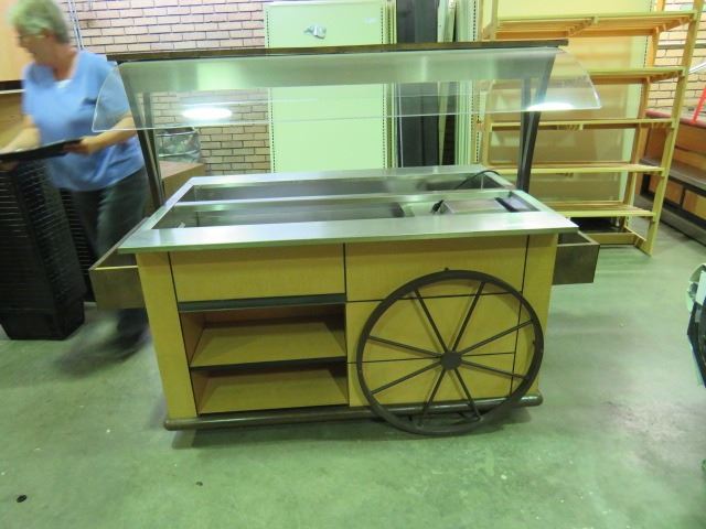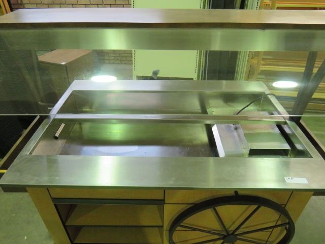 DELI SALAD BAR WITH SNEEZE GUARD AND HOOD, METLA FRAME ON WHEELS 4'8"X3'4"X6'W