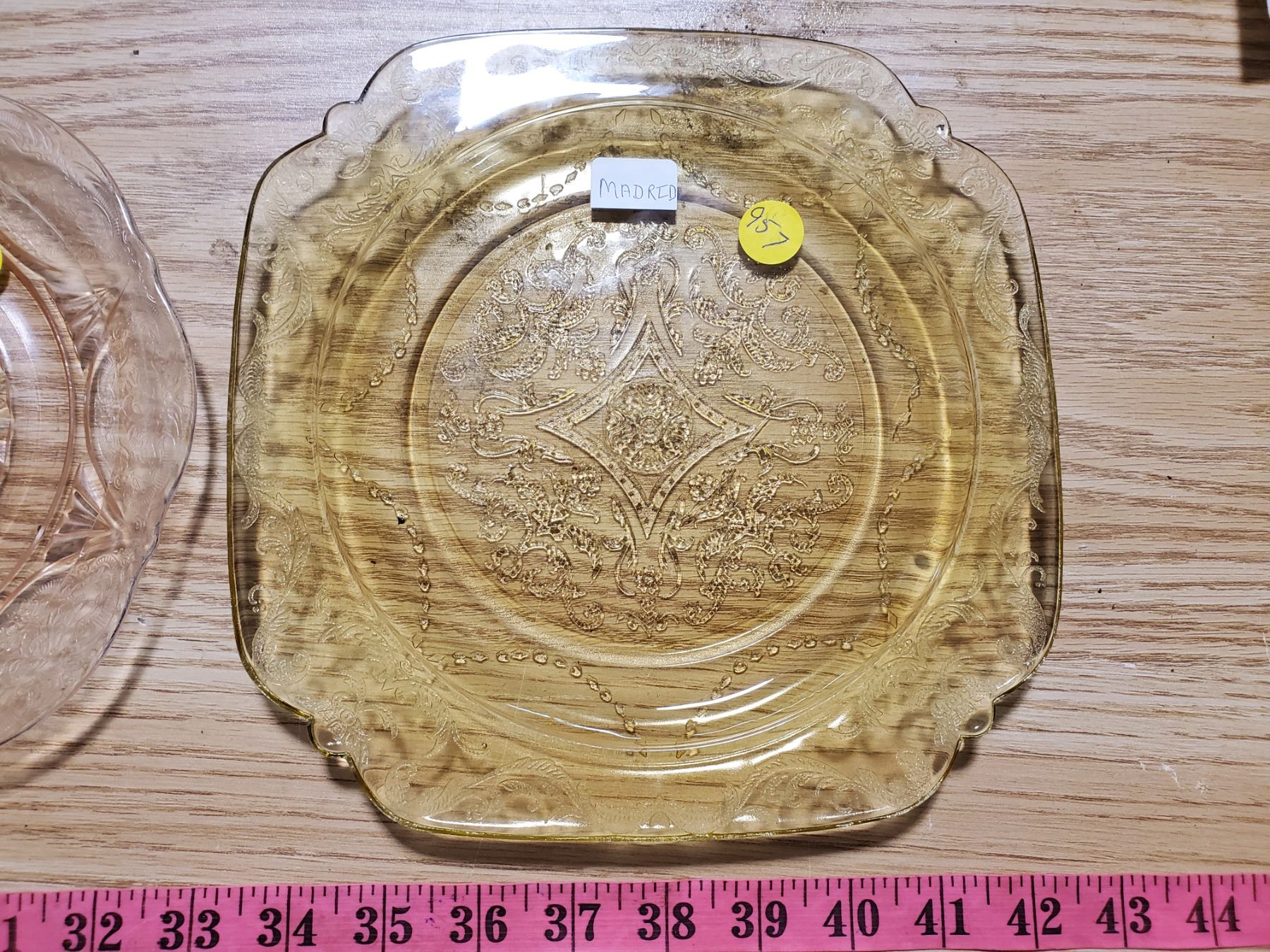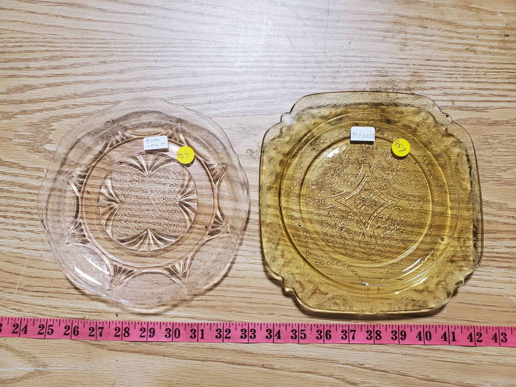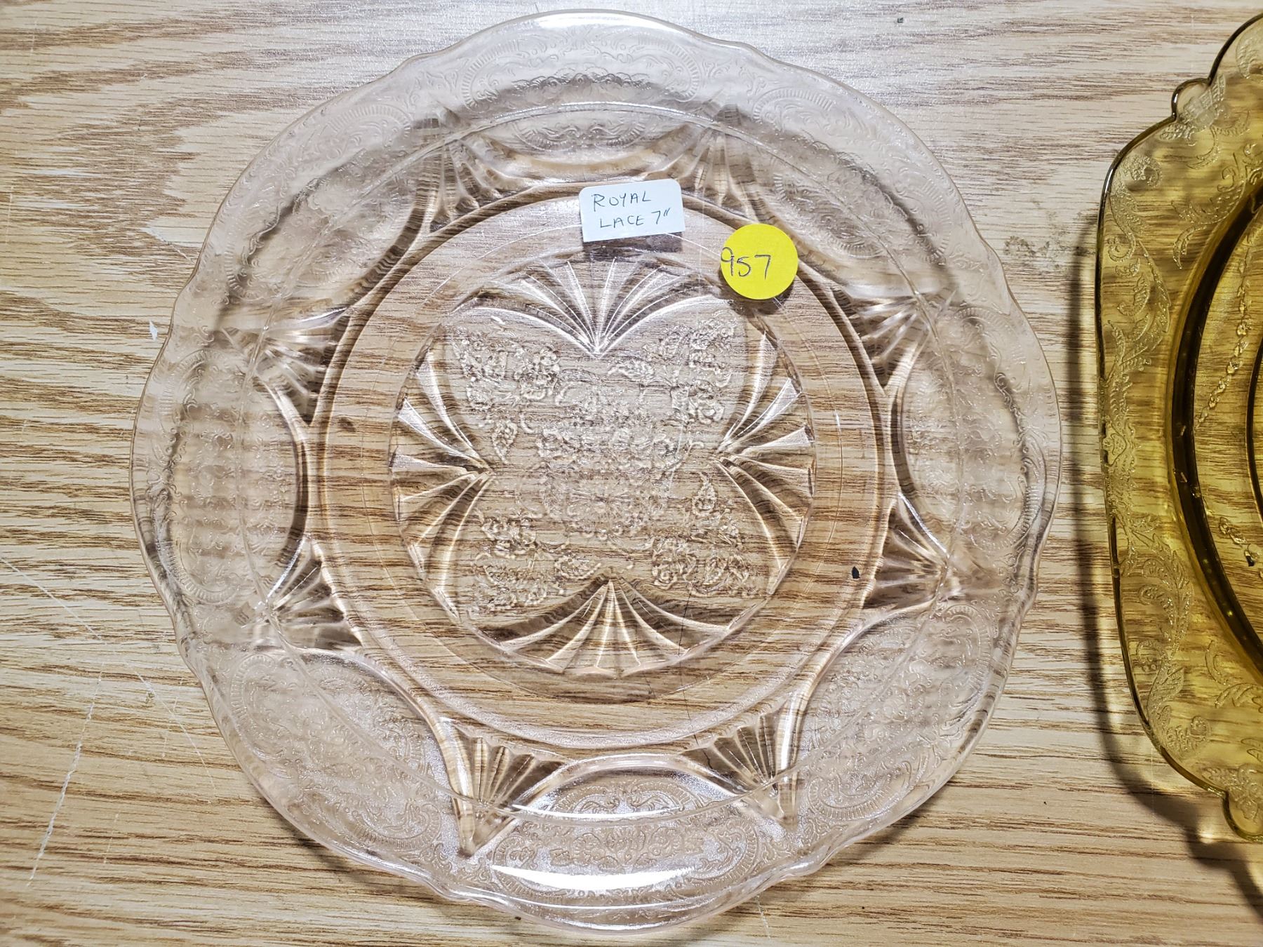 DEPRESSION GLASS - ROYAL LACE 7" PLATE, MADRID AMBER 7.5" PLATE