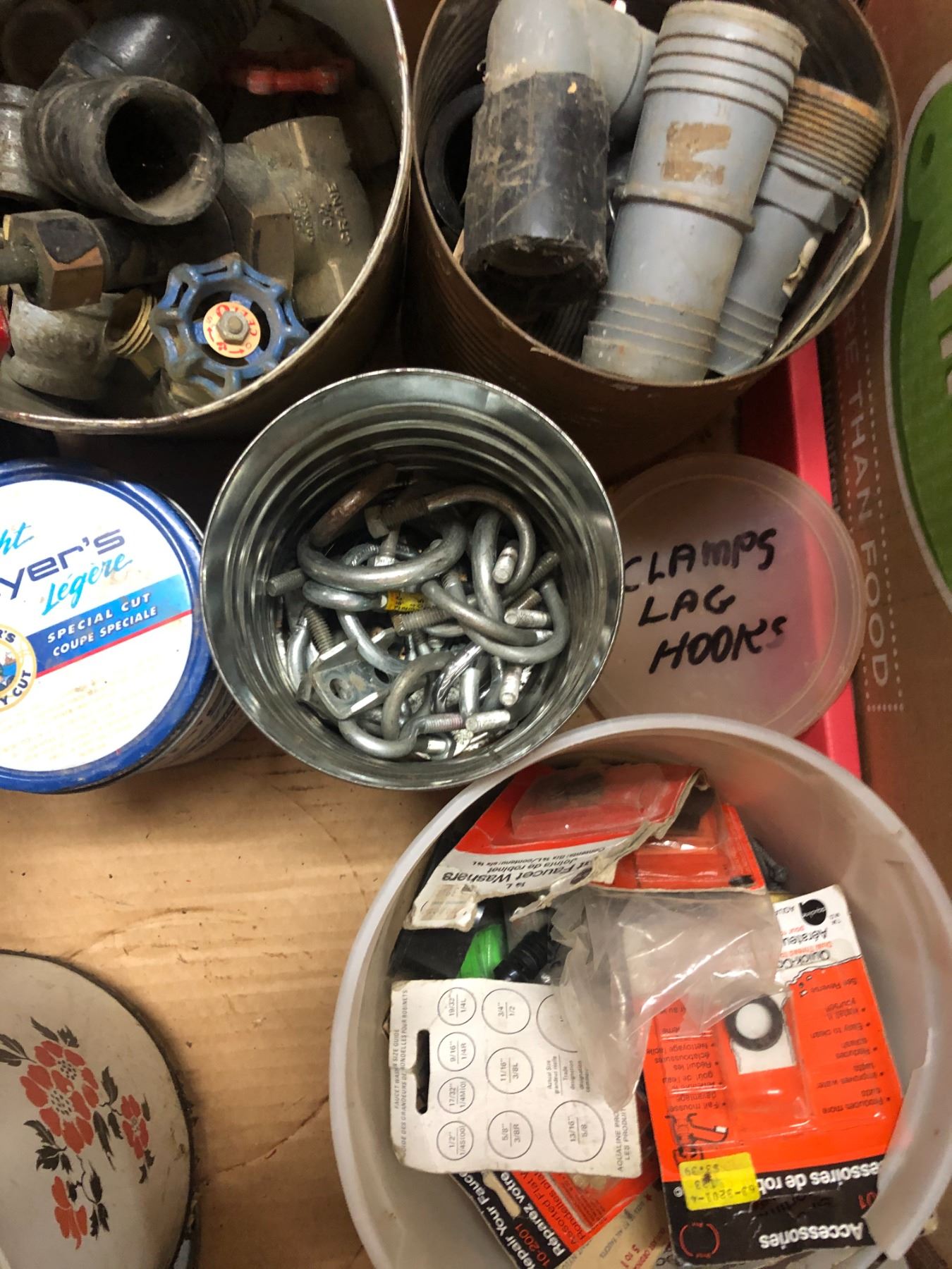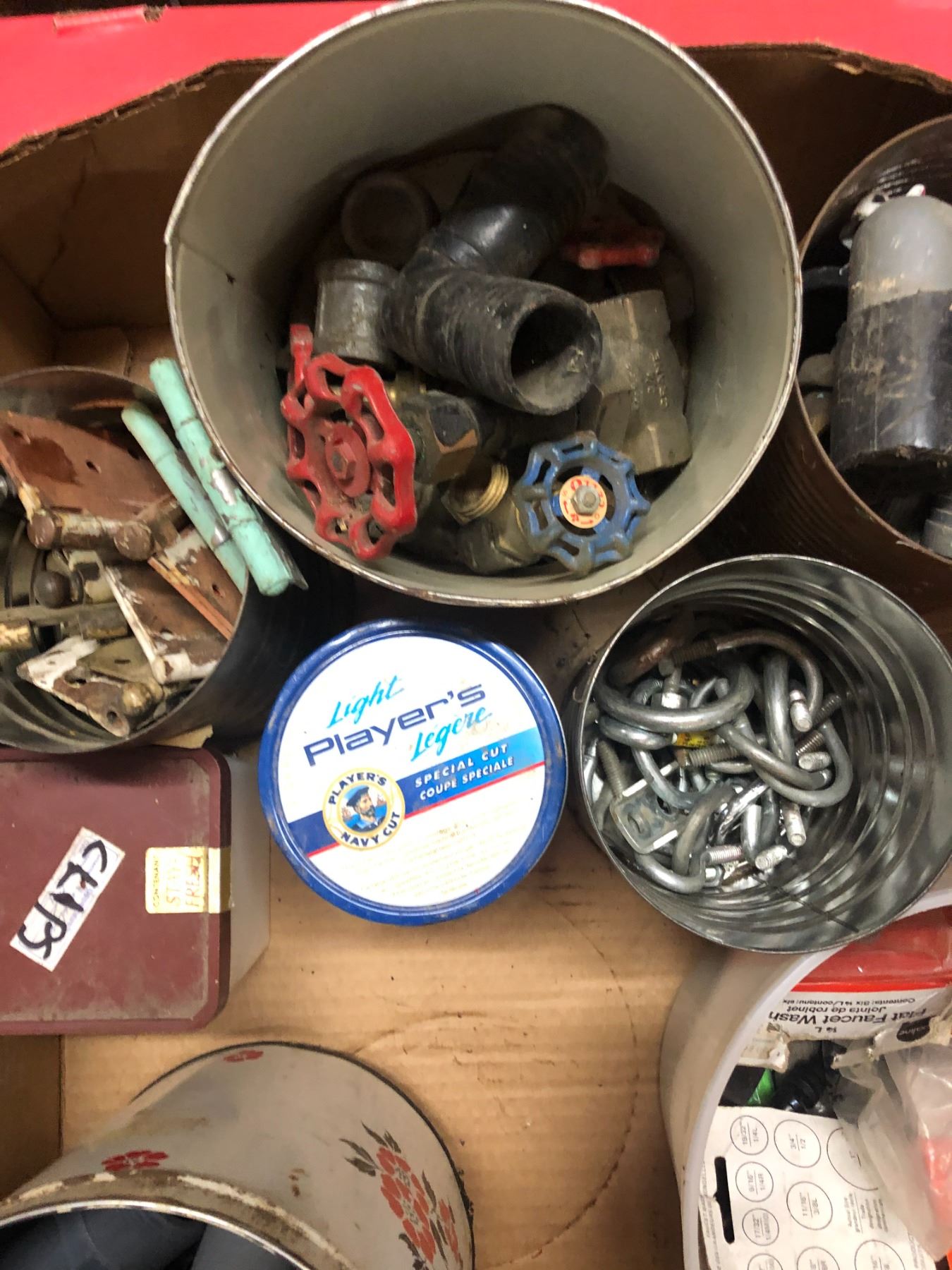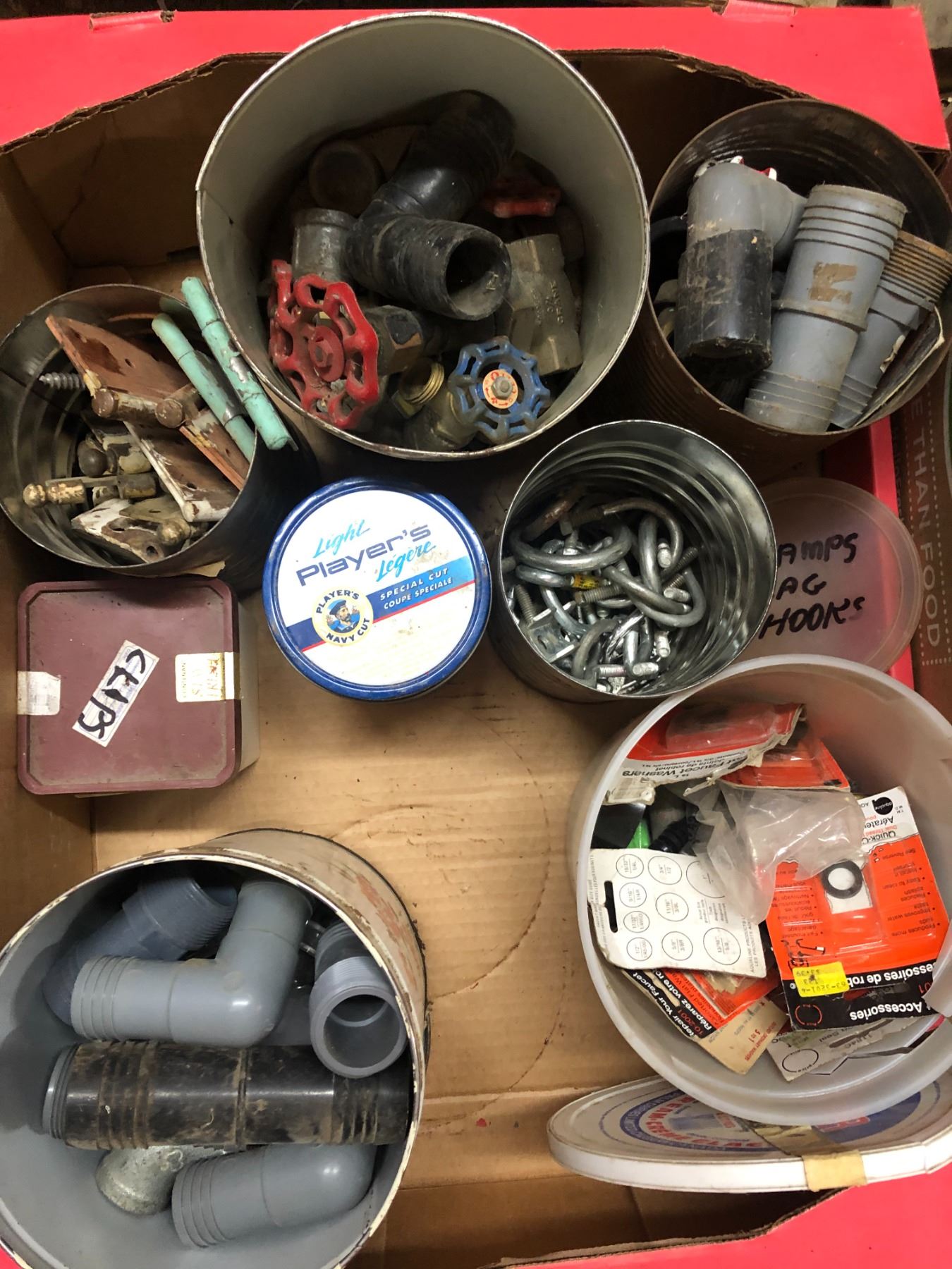 DIFFERENT COMPUNDS + BOX OF PLUMBING SUPPLIES AND FITINGS