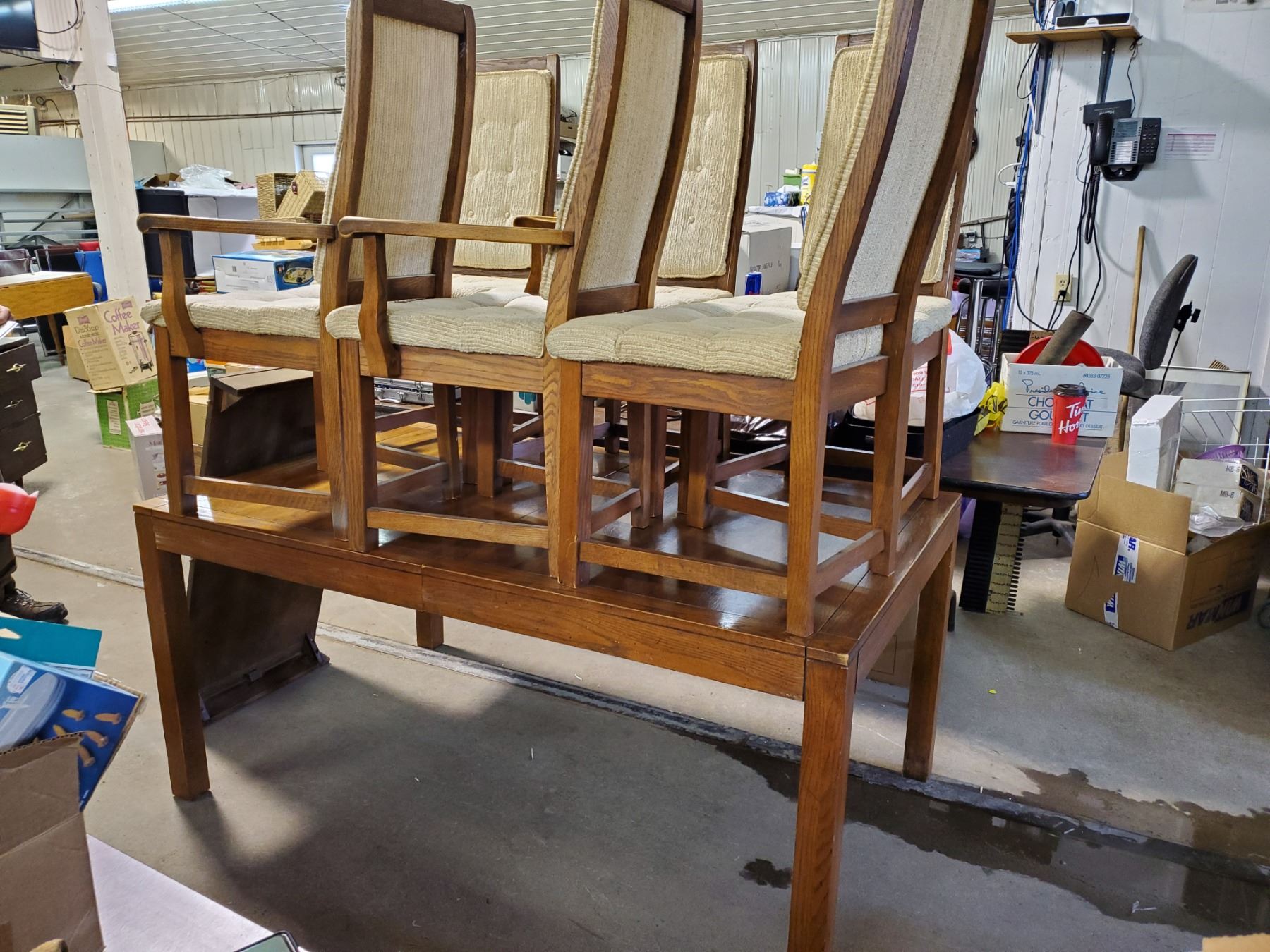 DINING ROOM TABLE WITH LEAF AND 6 CHAIRS - 64" X 40" X 29"