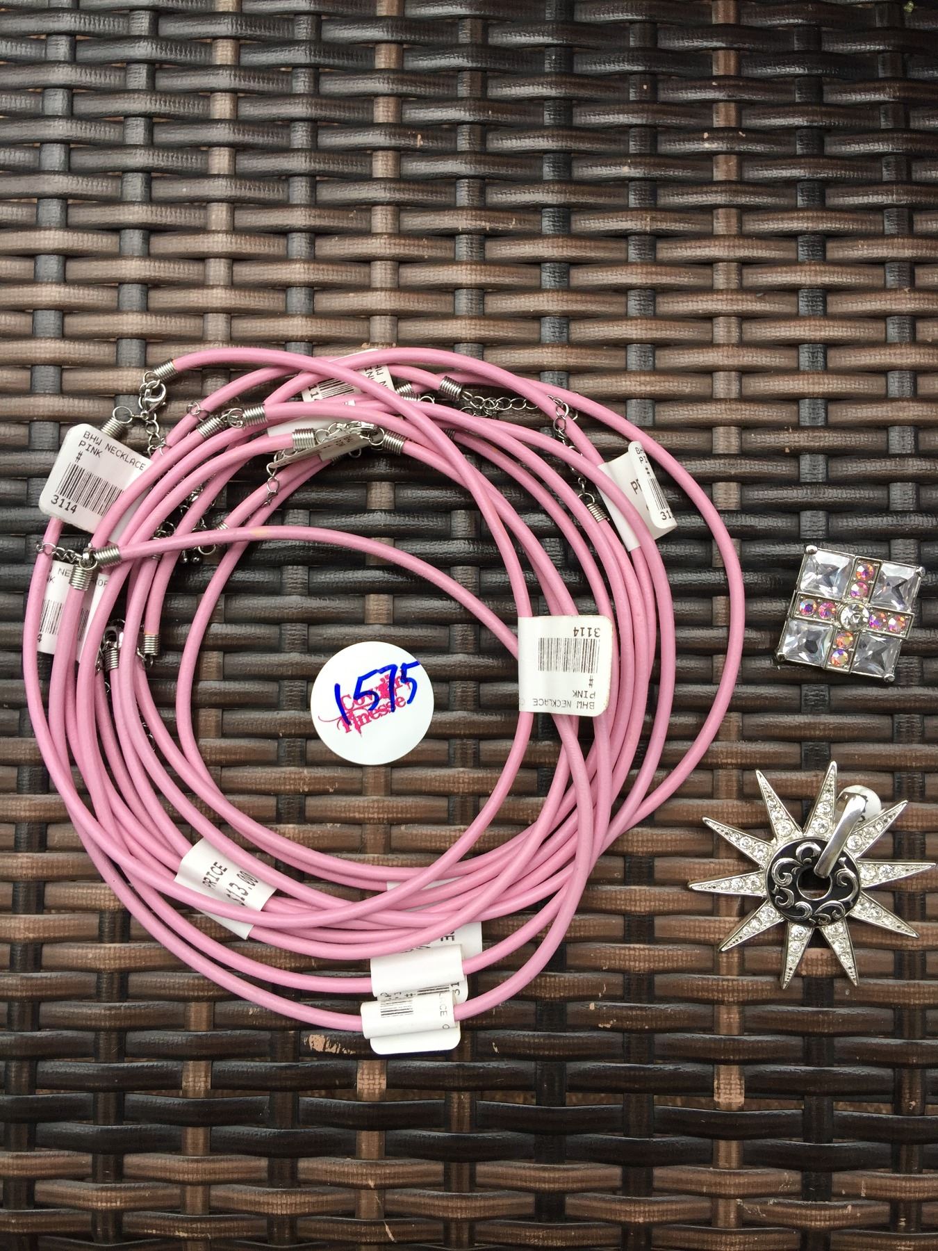 DISCOUNT JEWELER LOT OF 4/10 PINK ROPE NECKLACE,COWGIRL PENDANT,SPUR PENDANT,CROSS PENDANT