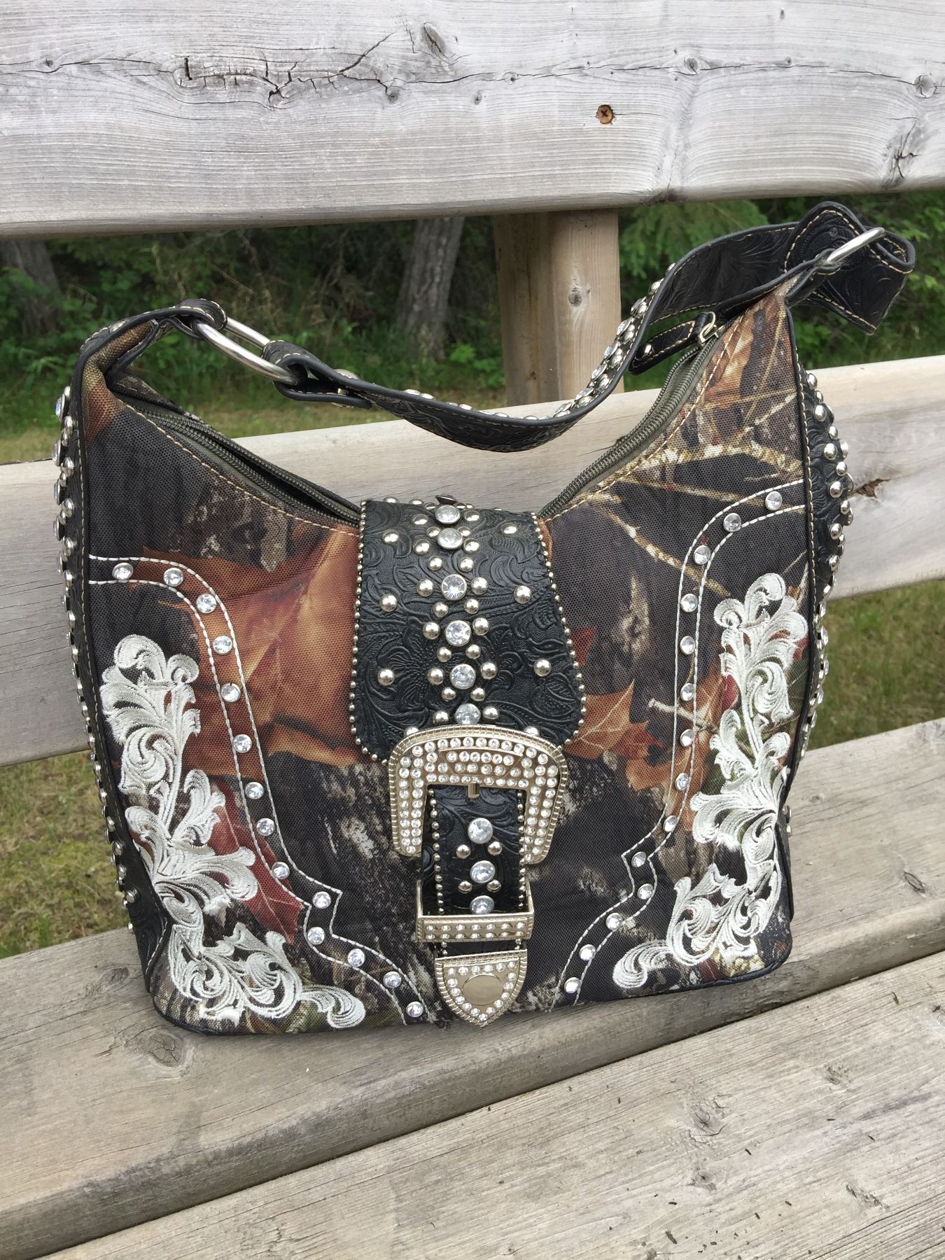 DISCOUNT PURSE/CAMO AND BROWN WESTERN (ONE STRAP BROKEN…EASILY FIXED!)