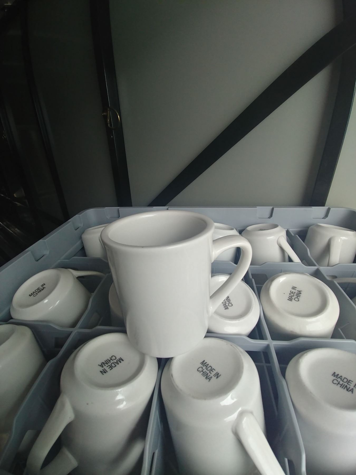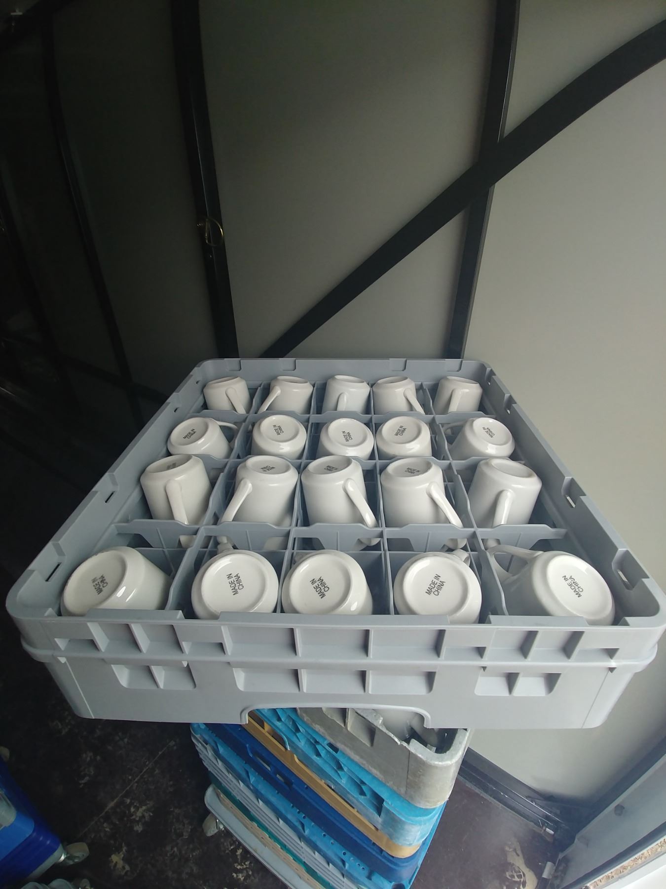 DISH WASHER RACK W/ 20 COFFEE CUPS (NO CHIPS)