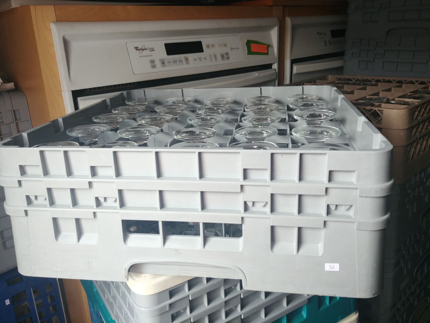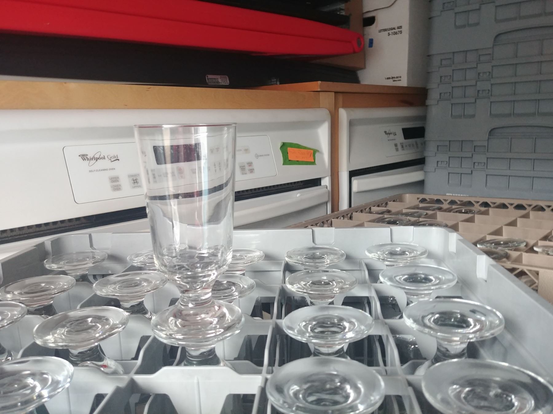 DISH WASHER RACK W/ 25 FOOTED WATER GLASSES