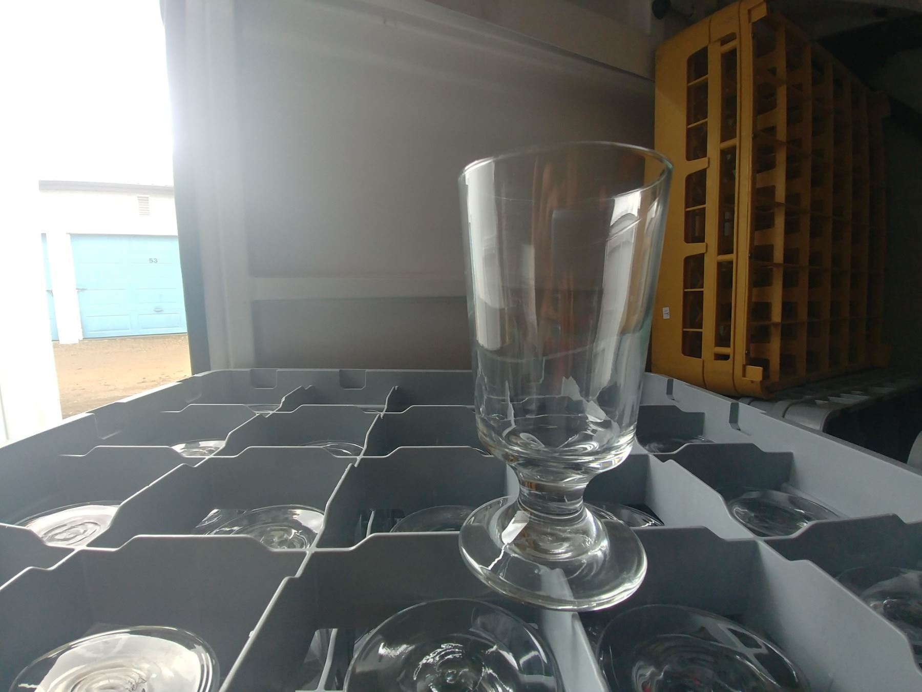 DISH WASHER RACK W/ 25 FOOTED WATER GLASSES