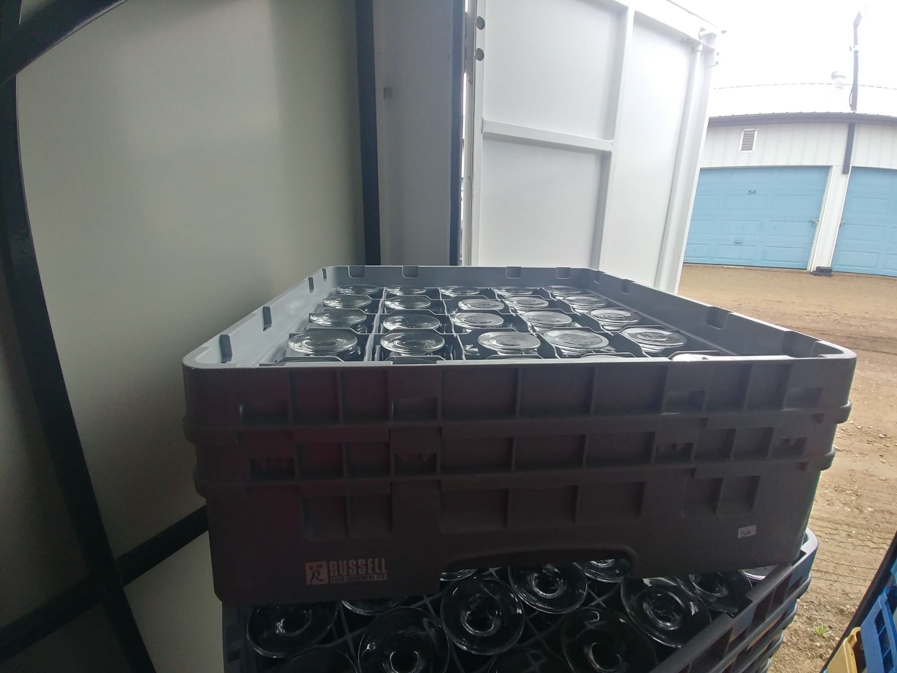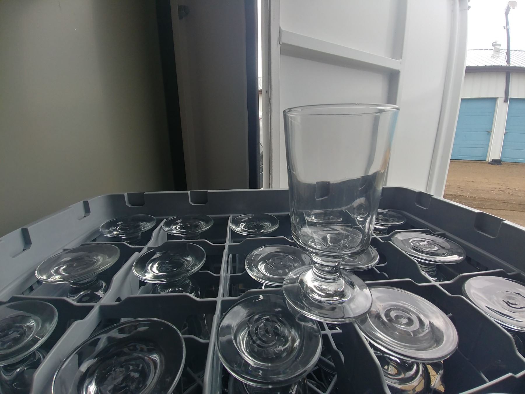 DISH WASHER RACK W/ 25 FOOTED WATER GLASSES