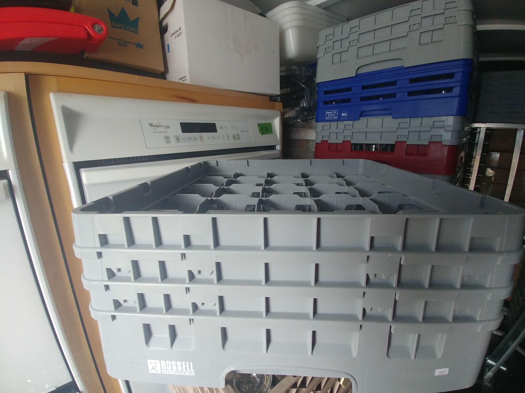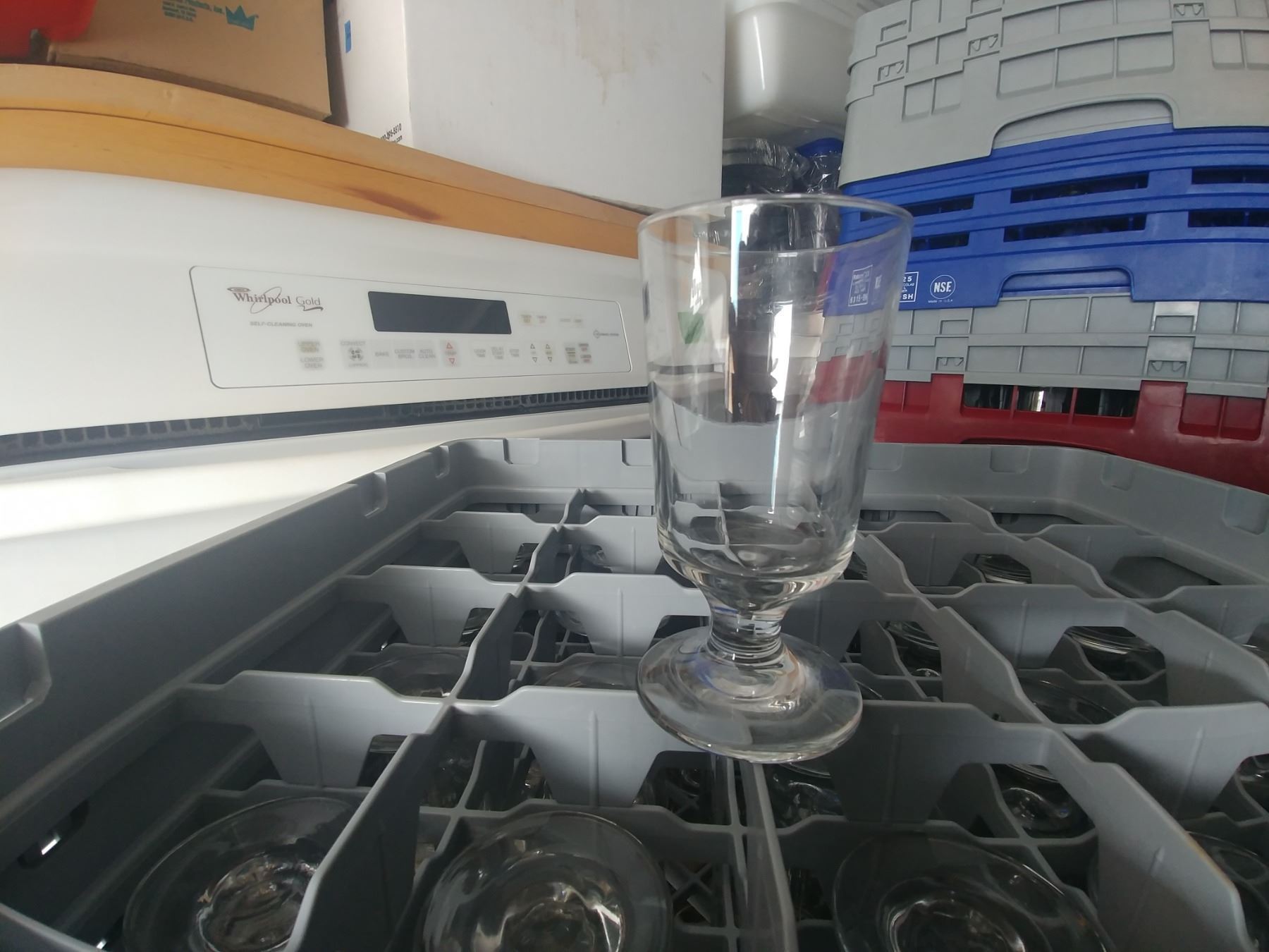 DISH WASHER RACK W/ 25 FOOTED WATER GLASSES