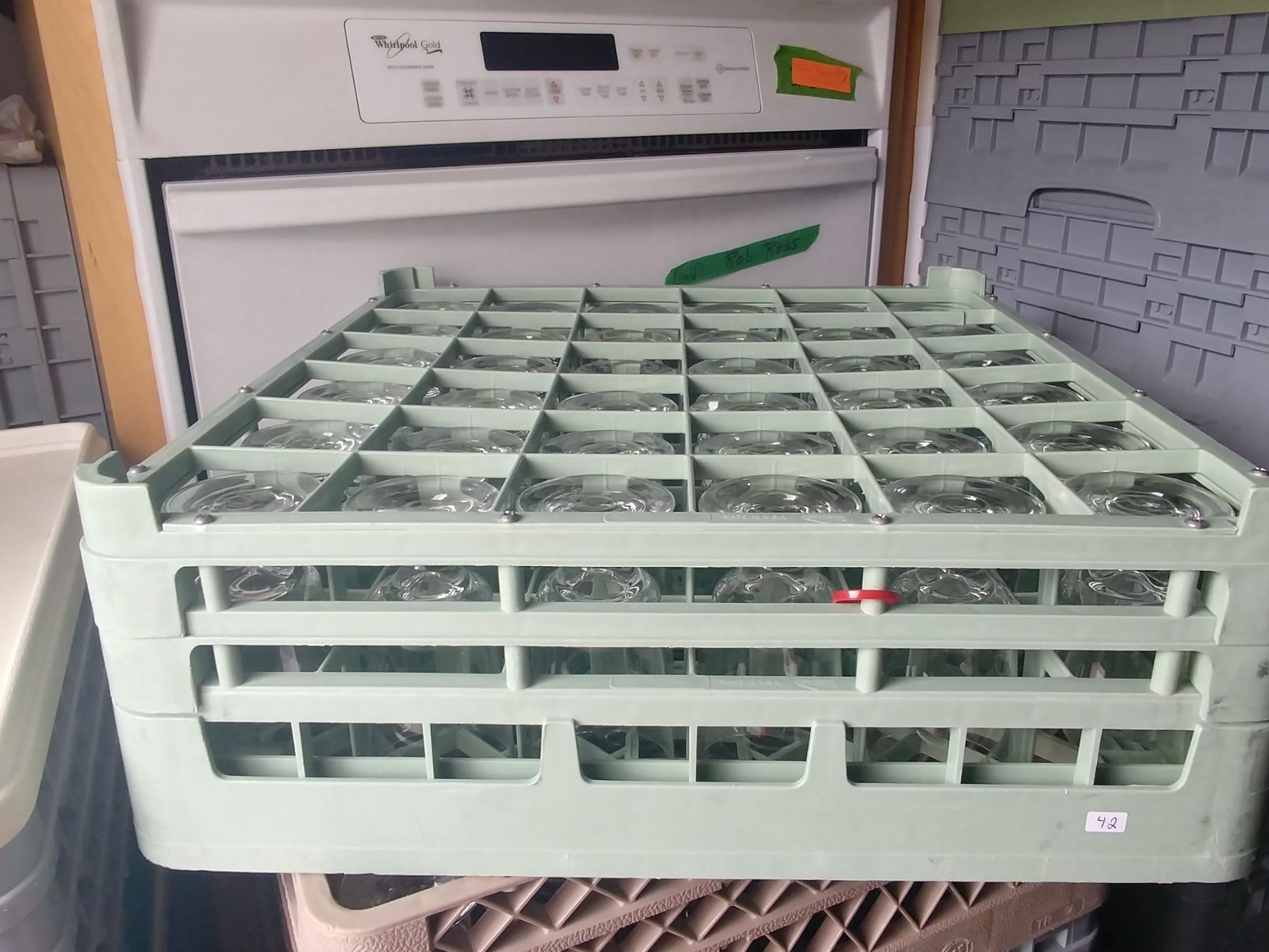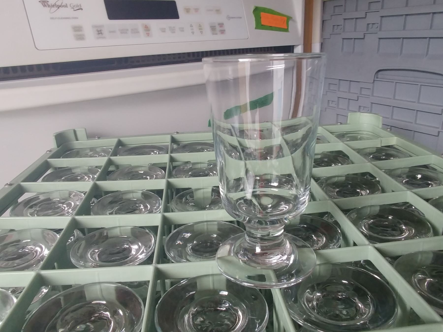 DISH WASHER RACK W/ 36 FOOTED WATER GLASSES