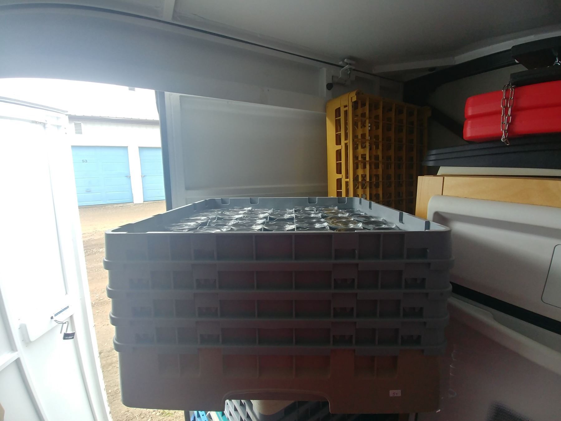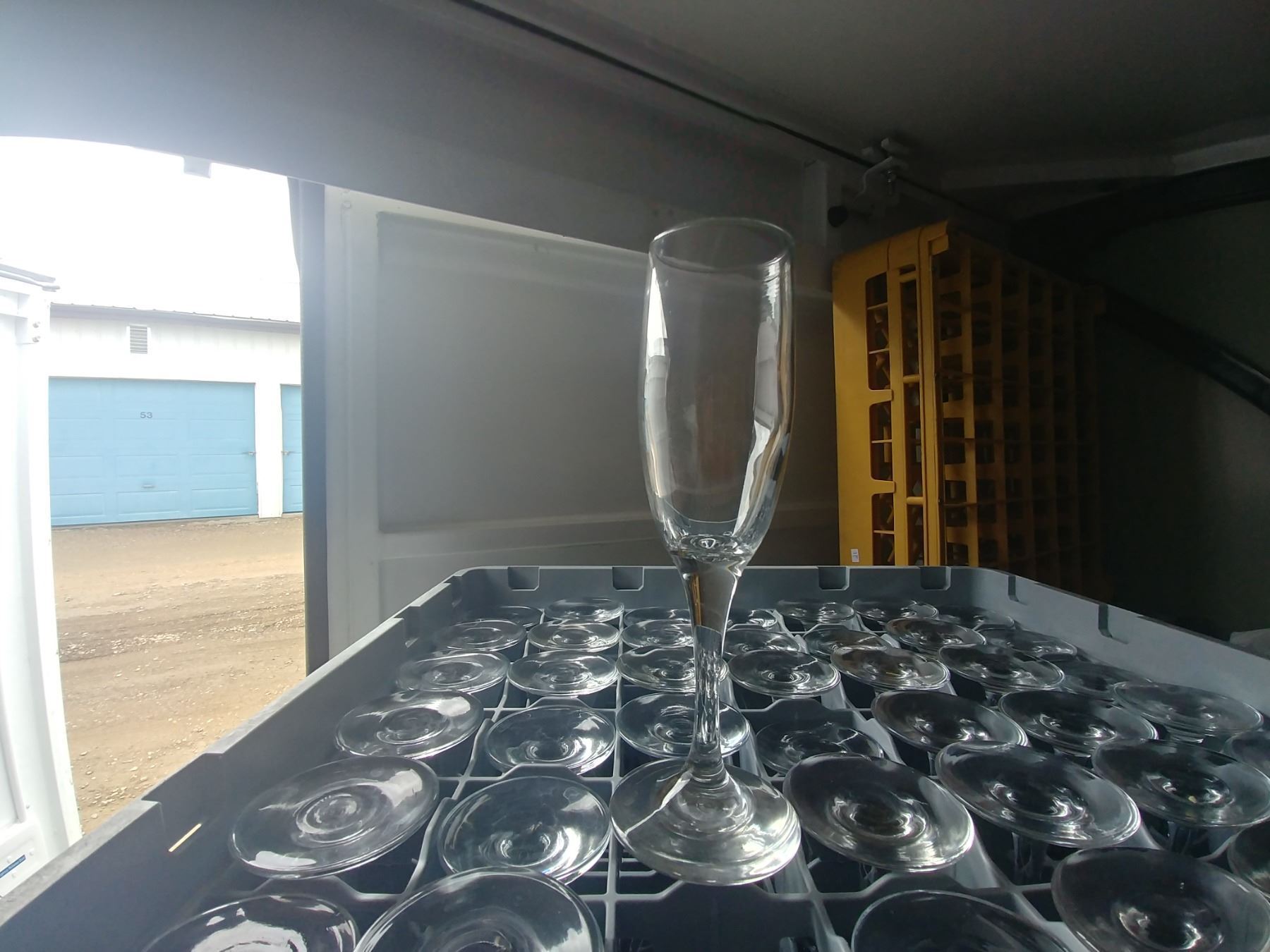 DISH WASHER RACK W/ 49 CHAMPAGNE FLUTES