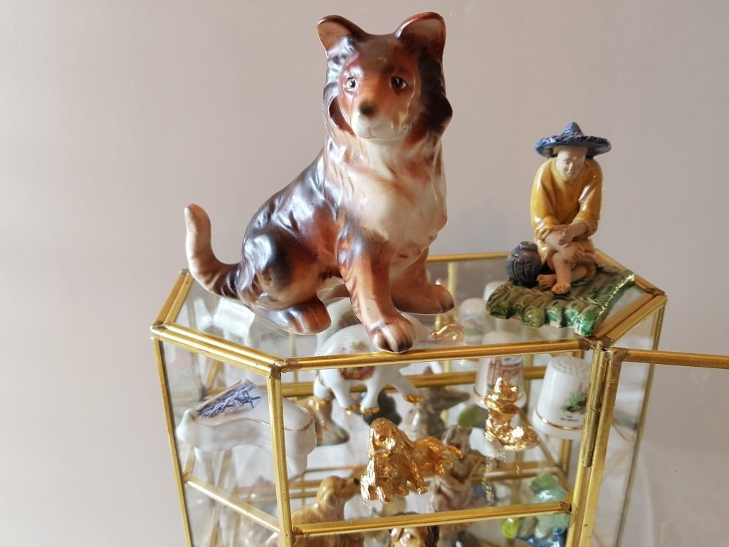 DISPLAY SHELF (W/KNICKNACKS, 2 CERAMIC BIRD WHISTLES)