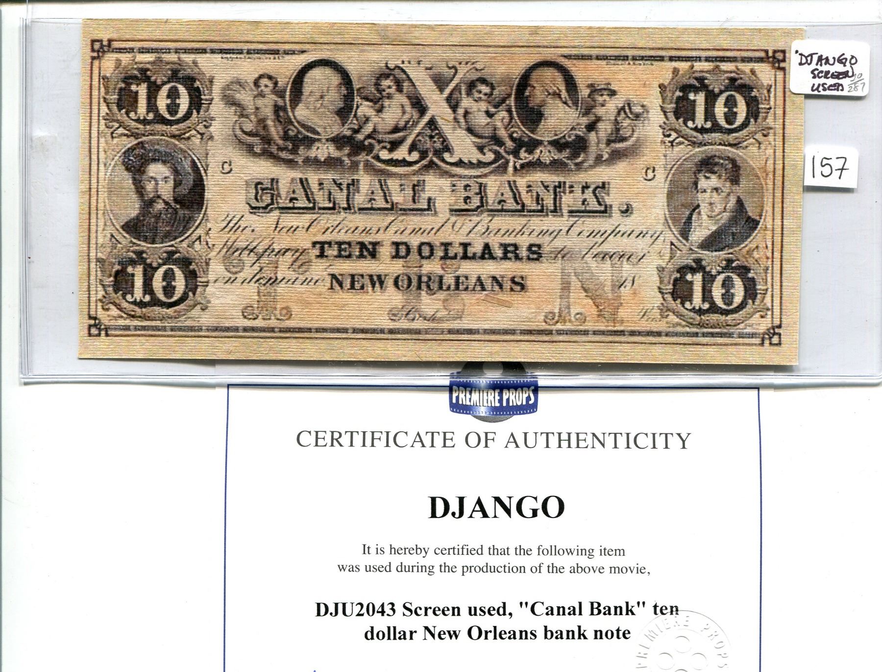 "DJANGO" SCREEN USED CANAL BANK 10 DOLLAR BILL