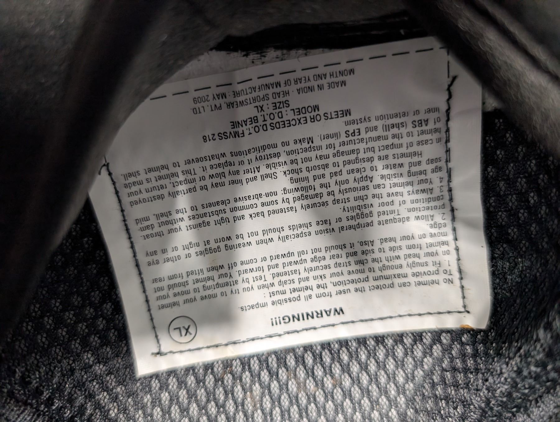 DOT Daytona FMVSS 218 XL Shell Helmet
