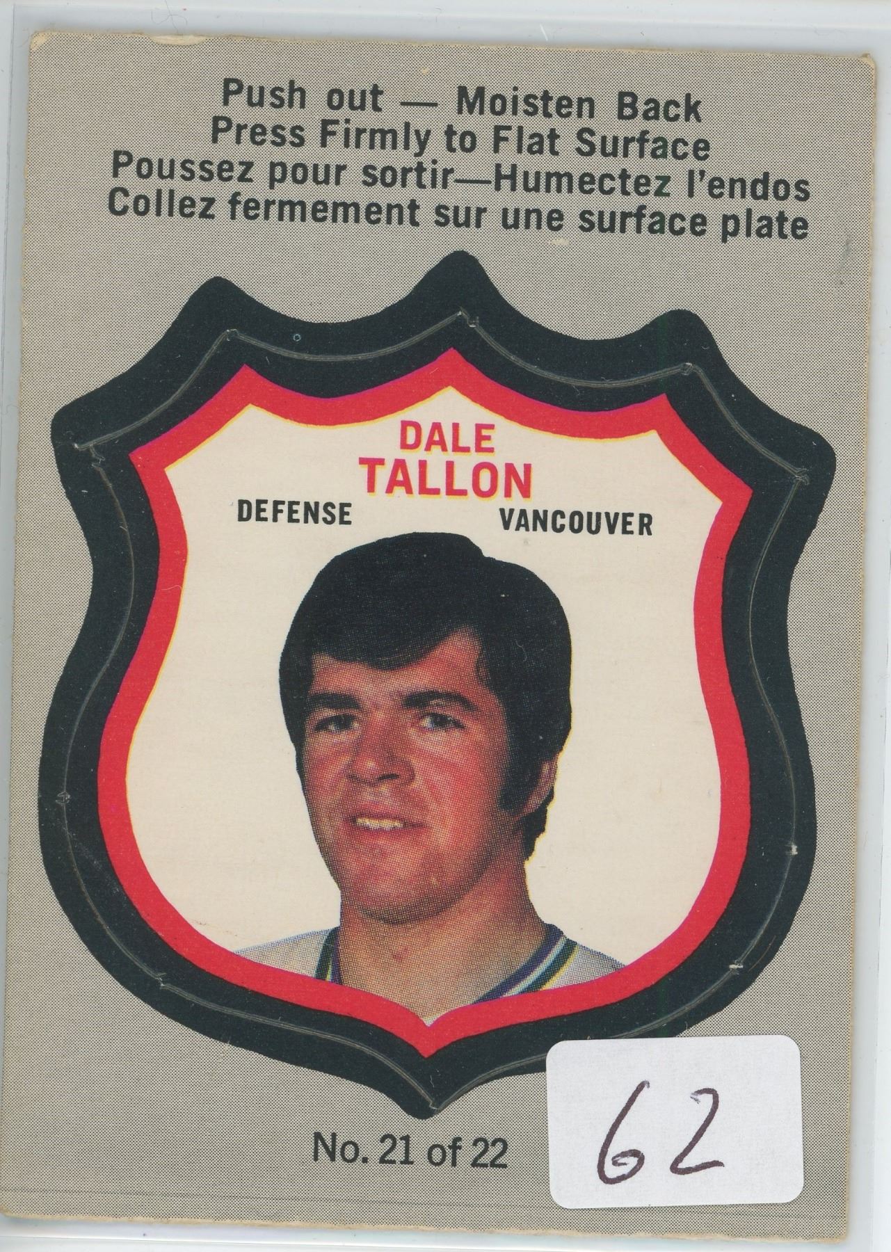 Dale Tallon Popout 1972-73 Team Canada #21