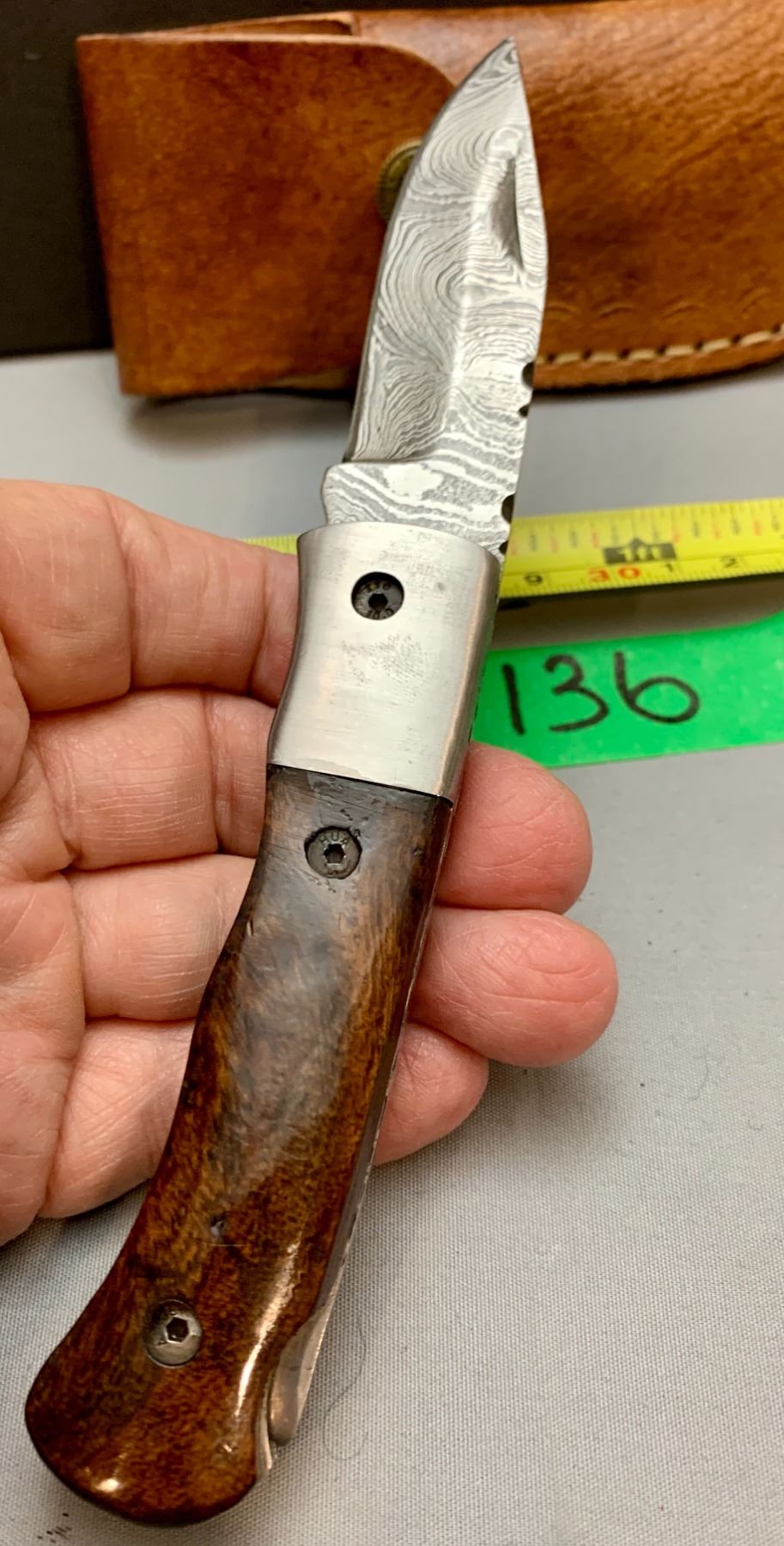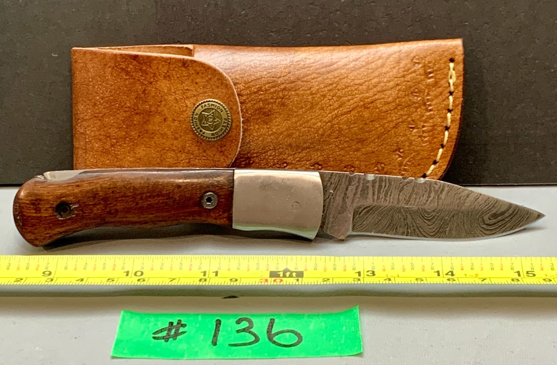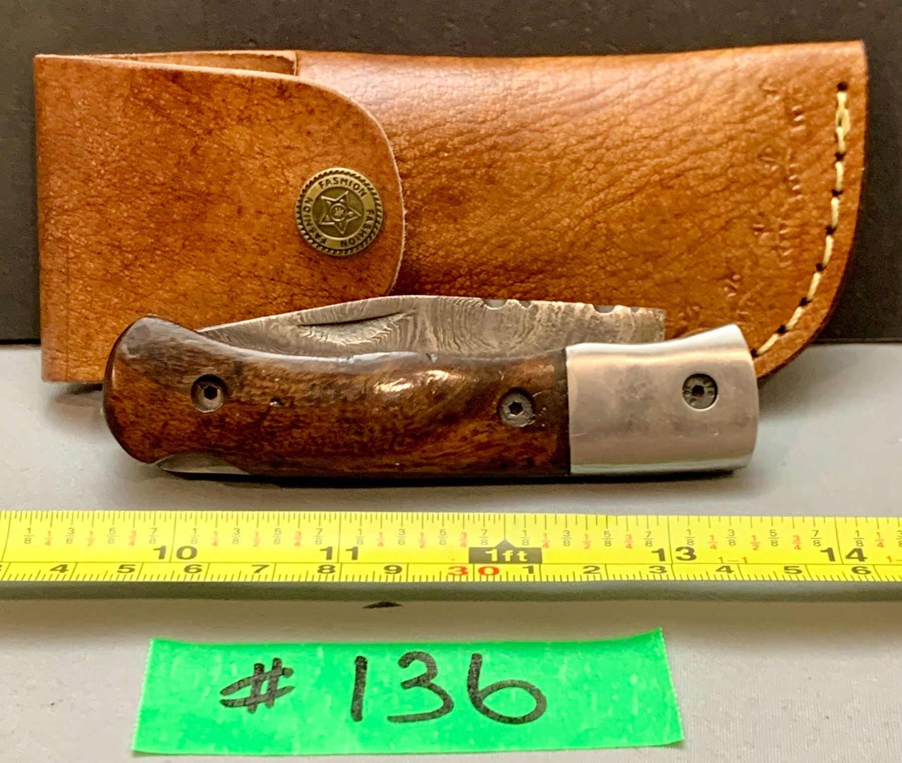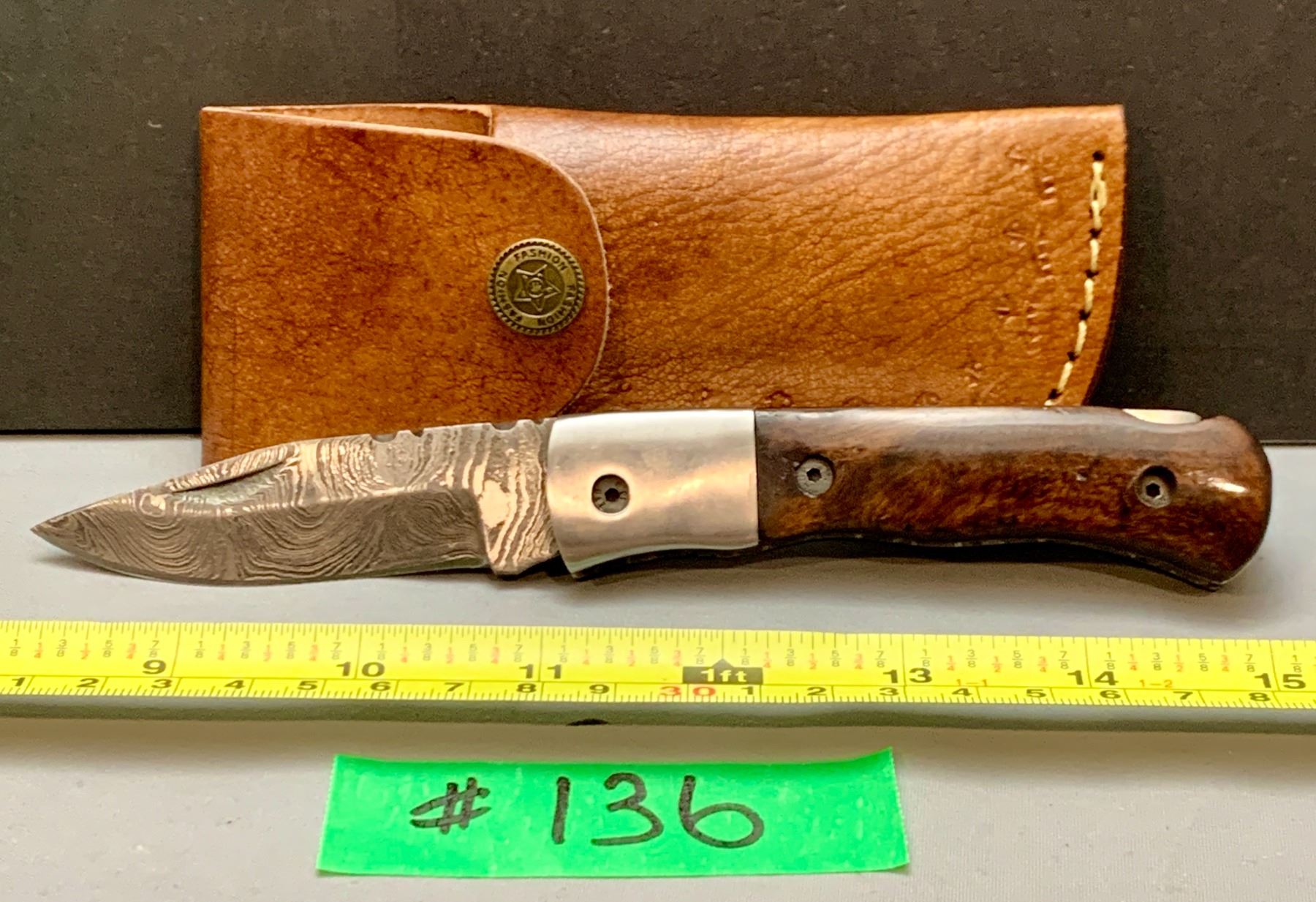 Damascus Steel Custom Handmade 260+ Folds Lock-Blade Knife Brown Wood Handle with Leather Sheath