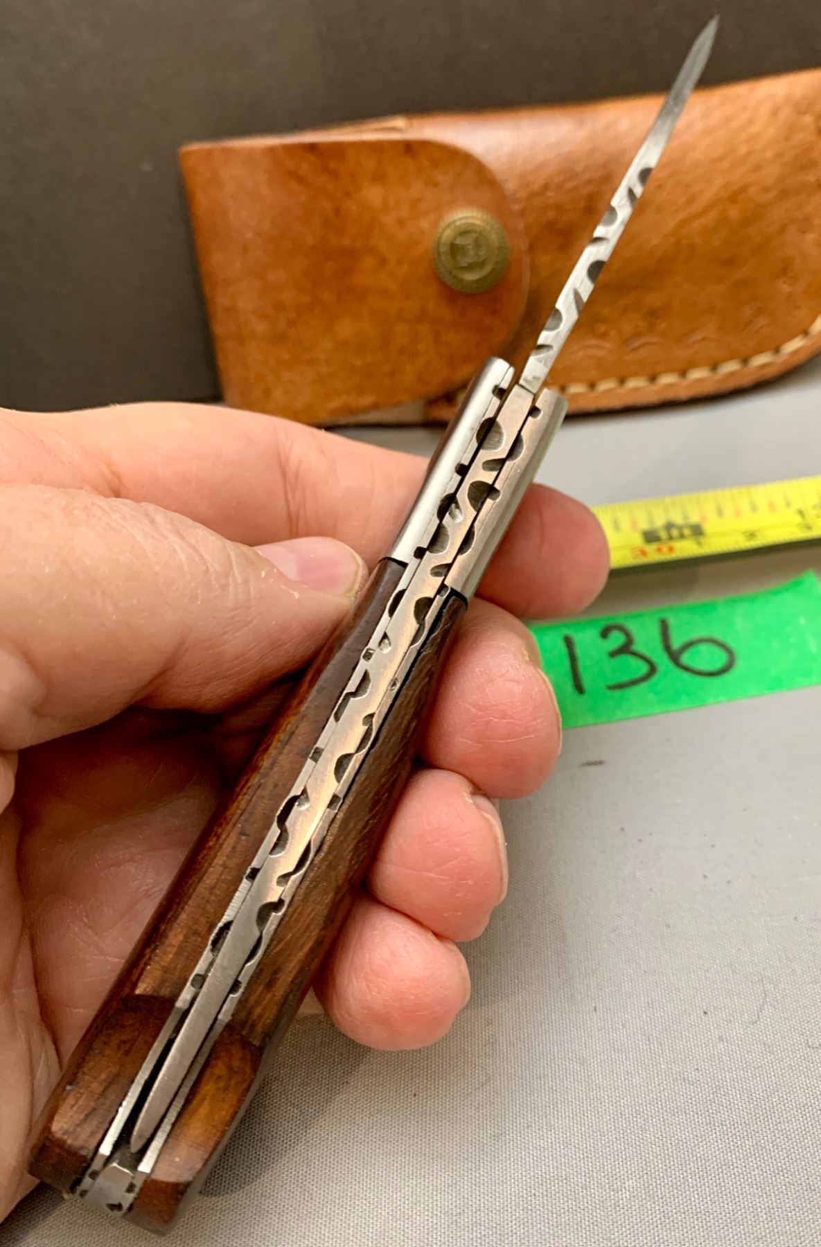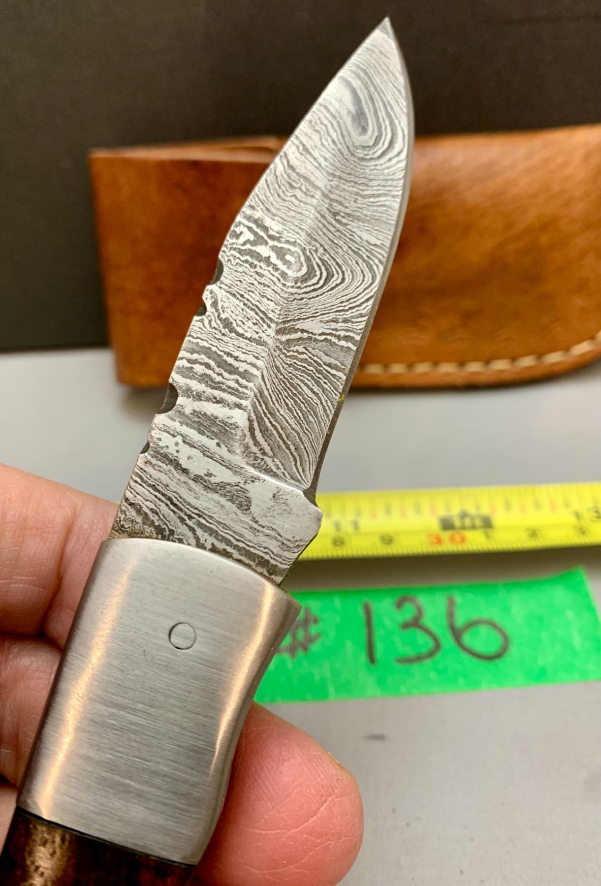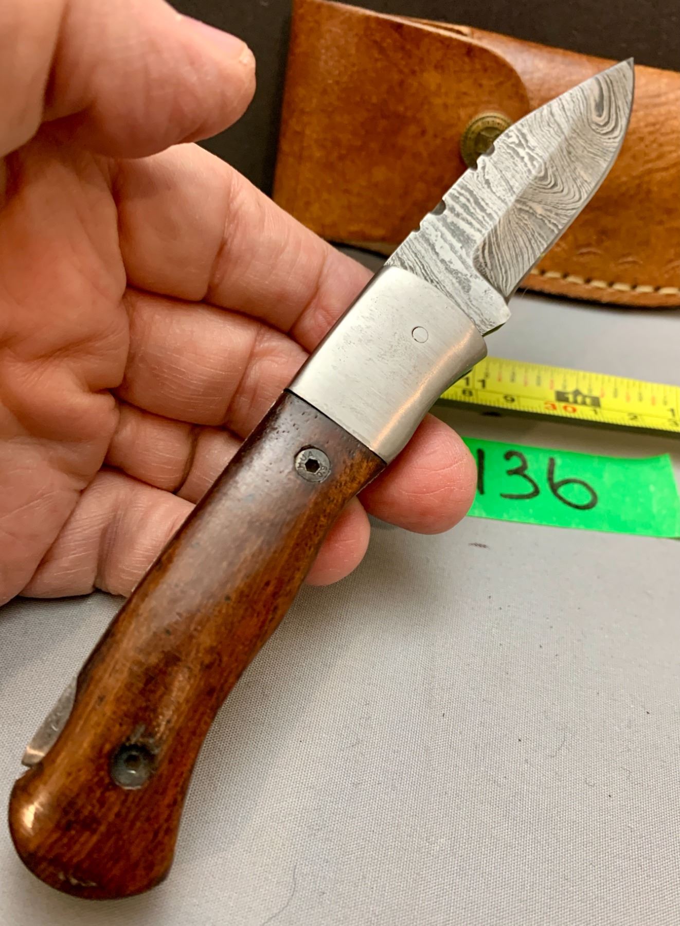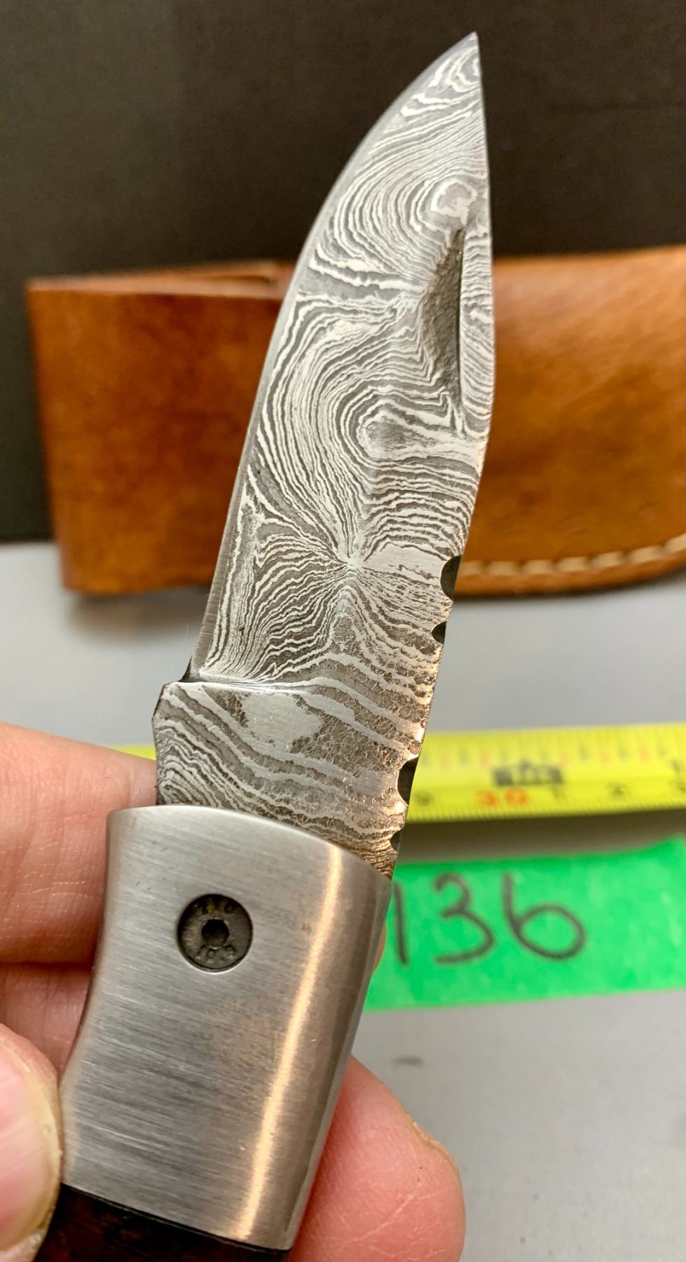 Damascus Steel Custom Handmade 260+ Folds Lock-Blade Knife Brown Wood Handle with Leather Sheath